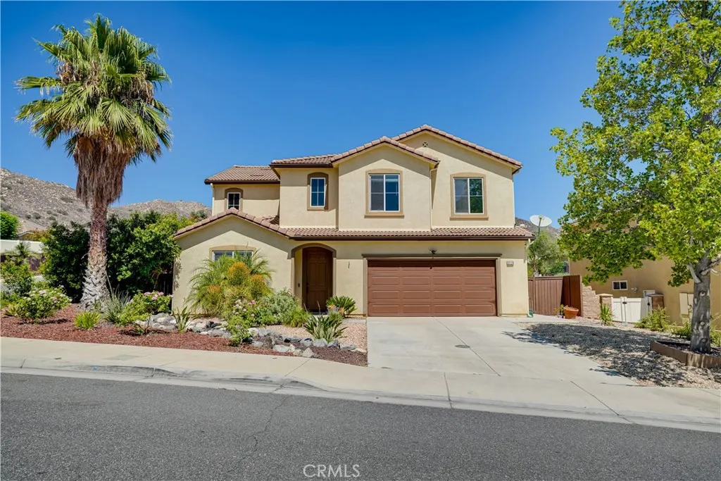 Welcome to 12179 Dewar Drive, a spacious 5-bed, 3-bath home on a large corner lot with stunning mountain views. Built in 2010, this home offers over 2,300 sq. ft. of living space with a brand-new HVAC system, tiled flooring throughout, and high ceilings that create an open, airy feel. The floor plan is designed for both comfort and flexibility with one bedroom downstairs and four bedrooms upstairs, including the primary suite. Upstairs youll find two bathrooms; along with a convenient laundry room with sink. The primary suite boasts a walk-in closet and private bathroom, while the additional bedrooms also feature generous closet space. At the heart of the home, the extended kitchen offers a large island, modern counters, and abundant cabinetry, opening seamlessly into the living room with a cozy fireplace. Outside, the quarter acre corner lot features a covered patio and plenty of space for entertaining, gardening, or simply enjoying the views. A 3-car tandem garage and oversized driveway provide ample parking and storage. Conveniently located near the 15 and 91 freeways, this home is tucked away on a quiet cul-de-sac in the Alvord Unified School District near Hillcrest High, with shopping, dining, and parks just minutes away.