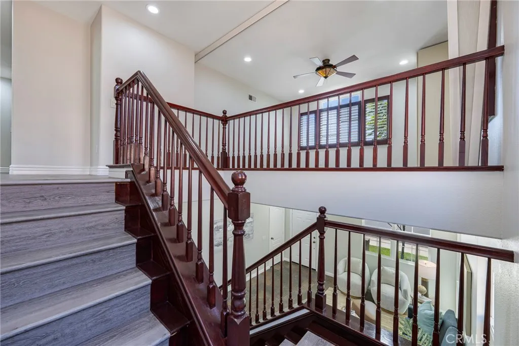 Discover exceptional living in the resort-style, guard-gated community of Dominguez Hills Village, where residents enjoy beautifully maintained grounds, a clubhouse, gym, swimming pool, tennis and basketball courts, parks, and scenic walking paths. This highly sought-after neighborhood offers comfort, security, and convenience, located near Dignity Health Sports Park, CSU Dominguez Hills, shopping, and major freeways. Inside, this home features 3 bedrooms plus a versatile loft that can easily serve as a 4th bedroom, complete with a wardrobe and sliding partition wall for added privacy. Thoughtful upgrades throughout enhance both comfort and efficiency. Plantation shutters and recessed LED lighting create a bright, energy-smart environment, while the owned and FULLY PAID OFF SOLAR SYSTEM and brand-new water heater help keep monthly utility costs low. Durable luxury vinyl plank and tile flooring flow through the living spaces, and ceiling fans in every bedroom ensure year-round comfort. The updated kitchen features a spacious island, walk-in pantry, and stainless steel appliances. It opens seamlessly to the family room, where a cozy fireplace and custom built-ins make for the perfect gathering spot. French doors lead to a private backyard with low-maintenance artificial turf, ideal for relaxing, entertaining, or unwinding after a long day. Upstairs, the primary suite offers a tranquil retreat with crown molding, inset ceiling, ceiling fan, LED recessed lighting, and an ensuite bathroom featuring dual vanities, a soaking tub, and a separate walk-in shower. Down the hall are tw
