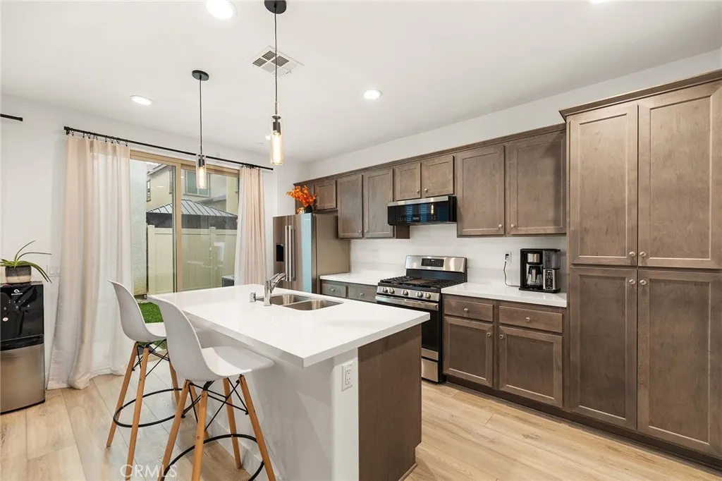 Welcome to Copper Skye, a BEAUTIFUL gated communitywith two private entrance in Winchester! This beautiful condominium offers 3 bedrooms, 2.5 bathrooms, and nearly-approx 1,400 sq. ft. of stylish living space designed for comfort and convenience. Step inside to find elegance touches throughout, Vinyl Plank flooring, elegant Cabinetry, Quartz countertops and a spacious kitchen island thats perfect for entertaining and custom Shutter on first-floor mini wall windows. The open floor plan flows seamlessly to a private, eco-friendly patio with natural grass, Cooler surface a rare find thats low-maintenance and perfect for family gatherings, pets, play, or peaceful evenings outdoors. Upstairs, youll discover generously sized bedrooms with walk-in closets, carpeting, and a convenient laundry area along with a linen closet for extra storage. But what truly sets Copper Skye apart is the resort-style living. Residents enjoy access to a brand-new pool, and tropical palm-lined community spaces, making every day feel like a getaway. Dont miss the opportunity to call this incredible home yours! Hold tight, Low HOA & Taxes!