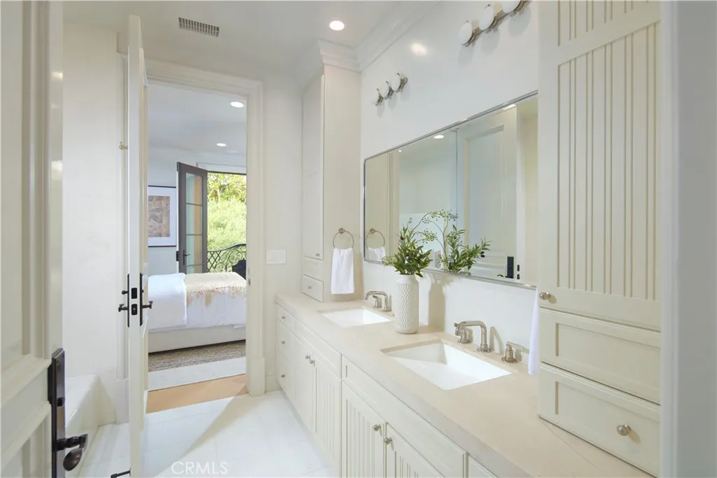 Exquisitely reimagined in 2025, this French palatial manor pairs timeless European elegance with fresh, modern sophistication. Set on a 13,155 sq. ft. parcel in the prestigious guard-gated enclave of Pelican Crest, the 8,367 sq. ft. residence commands sweeping views of the Pacific Ocean, Catalina Island, Newport Harbor, and the famed Pelican Hill Golf Course. Behind its stately faade, every detail has been elevated with the finest materials and craftsmanship: natural limestone and white oak herringbone floors, hand-brushed Venetian plaster, Moka Creme honed stone in all wet areas, and bespoke solid brass hardware in oil-rubbed bronze or polished nickel. The two-story foyer with antique chandelier leads to a grand staircase, gracious formal living and dining rooms with custom fireplaces, a richly appointed wood-paneled library, and a sun-filled family room with fireplace that adjoins the gourmet kitchen. A culinary showpiece, the kitchen featuring Calacatta Vagli marble surfaces, custom cabinetry, dual refrigerators, professional-grade appliance, and a built-in upholstered ocean-view banquette with custom breakfast table. The opulent primary suite offers a fireplace, spa-inspired bath with an ocean-view soaking tub, architectural glass-block accents for natural light, and a custom-designed closet. Additional amenities include five secondary suites, a tiered theater room, activity/fitness spaces, sauna, steam room, and a subterranean 7-car garage. Additional upgrades include a new roof, new HVAC system, all new plumbing connectors and two new water heaters. Outdoors, new stuc