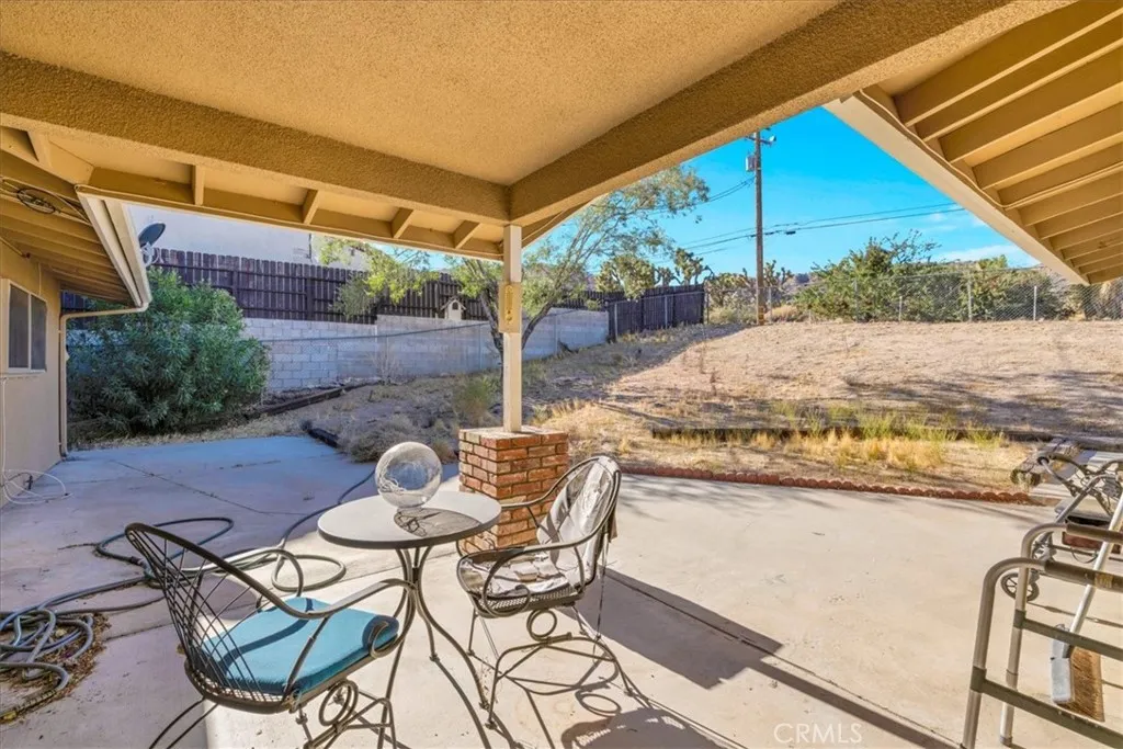 Welcome to your dream home in the beautiful Country Club area of Yucca Valley! This charming 3 bedroom, 2 bath home is nestled on just under 1/2 acre of meticulously landscaped grounds, offering the perfect blend of comfort and serenity. Upon arrival, you're greeted by a paved driveway leading to an attached 2 car garage, ensuring both convenience and ample parking space. Step onto the covered front porch and marvel at the stunning views. Inside, the expansive family room beckons with its large windows framing picturesque views and a cozy brick hearth fireplace, creating a welcoming ambiance. Soft carpeting underfoot adds a touch of luxury to this inviting space. The kitchen is a chef's delight, boasting tile countertops, stainless steel appliances, and abundant cabinetry for all your culinary needs. Adjacent to the kitchen, the dining room features a grand brick hearth with an indoor BBQ, seamlessly transitioning to the living room where you will find another fireplace on the side. The living room boasts beautiful wood beamed ceilings and French doors leading outside. Convenience meets functionality in the laundry room, complete with a second fridge for extra food and drink storage. The two guest bedrooms offer ample space and closet areas, while the guest bath features elegant tile countertops and a tiled tub/shower combo. Retreat to the generously sized primary bedroom, featuring its own attached bath for added privacy and comfort. Outside, the fenced backyard invites relaxation and entertainment with its breathtaking views, covered concrete patio, second brick patio, an