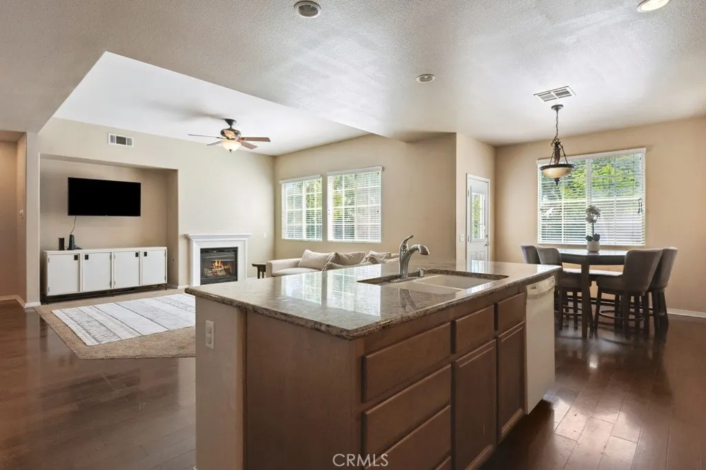 Luxurious and spacious, this 5-bedroom, 3-bath home is ideally located in the highly desirable Rosetta Canyon communityjust minutes from shopping, dining, and I-15 for convenient commuting. Enter inside to soaring 11-foot ceilings, rich wood flooring, and an oversized granite island kitchen featuring upgraded cabinetry and a seamless flow into the open-concept family roomperfect for everyday living and entertaining. The first floor is designed to be wheelchair accessible, featuring a level entry, plus a large downstairs bedroom, and a full bath with a walk-in showerideal for guests or multigenerational living. Upstairs, retreat to an expansive primary suite with a spa-like en-suite bath, while generously sized secondary bedrooms offer ample space and natural light. The large backyard with stamped concrete is ready for outdoor enjoyment, and a 3-car garage provides plenty of storage. Located near Earl Warren Elementary, Elsinore Middle school and Temescal Canyon high school, and surrounded by resort-style community amenities including parks, athletic fields, tennis and basketball courts, BBQ areas, a dog park, and a scenic lakethis home truly has it all.
