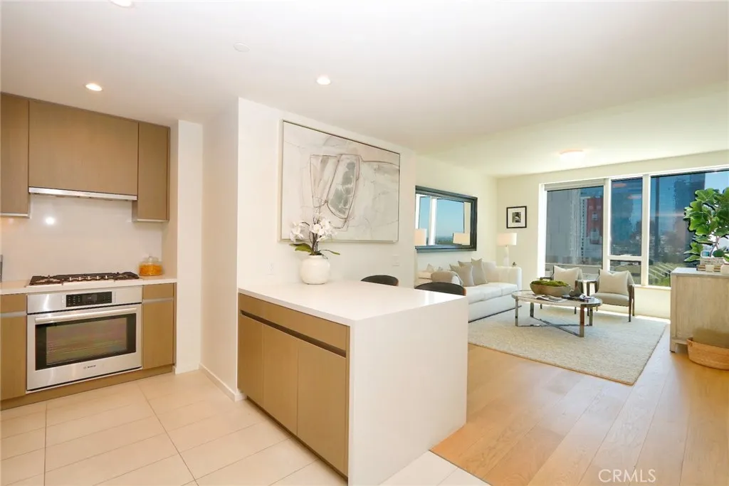 Experience elevated urban living in this sleek and spacious 1-bedroom, 1.5-bathroom condo in the prestigious Metropolis Tower 1. With wide open south-facing views, this high-rise residence showcases breathtaking vistas of the Downtown LA skyline, Griffith Observatory, and even the Hollywood Signvisible from every room through expansive floor-to-ceiling windows that fill the space with natural light. The thoughtfully designed interior features an open-concept layout with high-end finishes throughout, including Caesarstone countertops, custom cabinetry, premium Bosch appliances, and warm oak wood flooring that adds an elegant touch. In-unit laundry and custom window shades provide added comfort and convenience. Residents of Metropolis enjoy exclusive access to resort-style amenities, including a sparkling pool and spa, fully equipped fitness center, steam room, private lounges, a screening room, and beautifully designed community spaces perfect for working remotely or entertaining. The building also offers 24-hour security, front desk service, and high-speed WiFi included. Located in the heart of the Financial District, you're just minutes from Koreatown, Little Tokyo, and Crypto.com Arena, with the best of downtown dining, shopping, and entertainment right outside your door. Additional monthly parking is available across the street. This is modern city living at its finestrefined, connected, and effortlessly luxurious.
