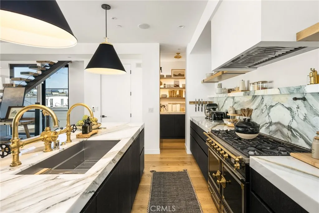 A stunning modern coastal townhome in the heart of Newport Beachs coveted Lido Marina Village. Built in late 2022 Designed by Brandon Architects and award-winning interior designer Cristana Rocamora, this nearly new residence blends refined elegance with the ease of coastal living. Spanning 2,509 sq. ft. across three levels with a private elevator, the home was originally designed as three bedrooms and currently features two (easily convertible back to three), along with 3.5 luxurious baths. The entry level opens to a beautifully designed courtyard with Pet-turf and collapsing glass doors, a bedroom with an en-suite Nero Marquina marble bath, a beautifully appointed Calacatta Viola marble full guest bathroom with walk-in shower, a laundry room, and direct access to the three-car garage with epoxy-coated floors. The second level showcases a chefs kitchen anchored by Miele appliances, a La Cornue stove, Sub-Zero beverage station bar, and Ziething custom cabinets. A gorgeous Borghini Macchia Vecchia marble island with seating, butlers pantry, custom wine cellar with built-in refrigerator, and an inviting dining area complete the space. The living room offers warmth with a fireplace, built-in bar, and access to a striking powder room. A secret room adds a touch of intrigue and uniqueness thats a must-see. The third level is dedicated to the primary suitea private retreat with sliding glass doors that open to a balcony, a wet bar, spa-inspired master bath wrapped in Arabescato marble, and a custom walk-in closet with abundant tailored storage. Throughout the home, youll find Wat
