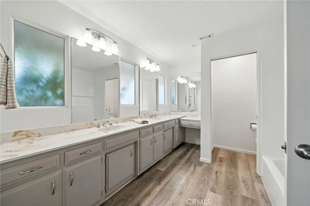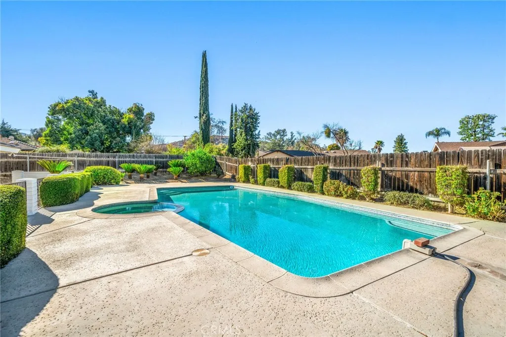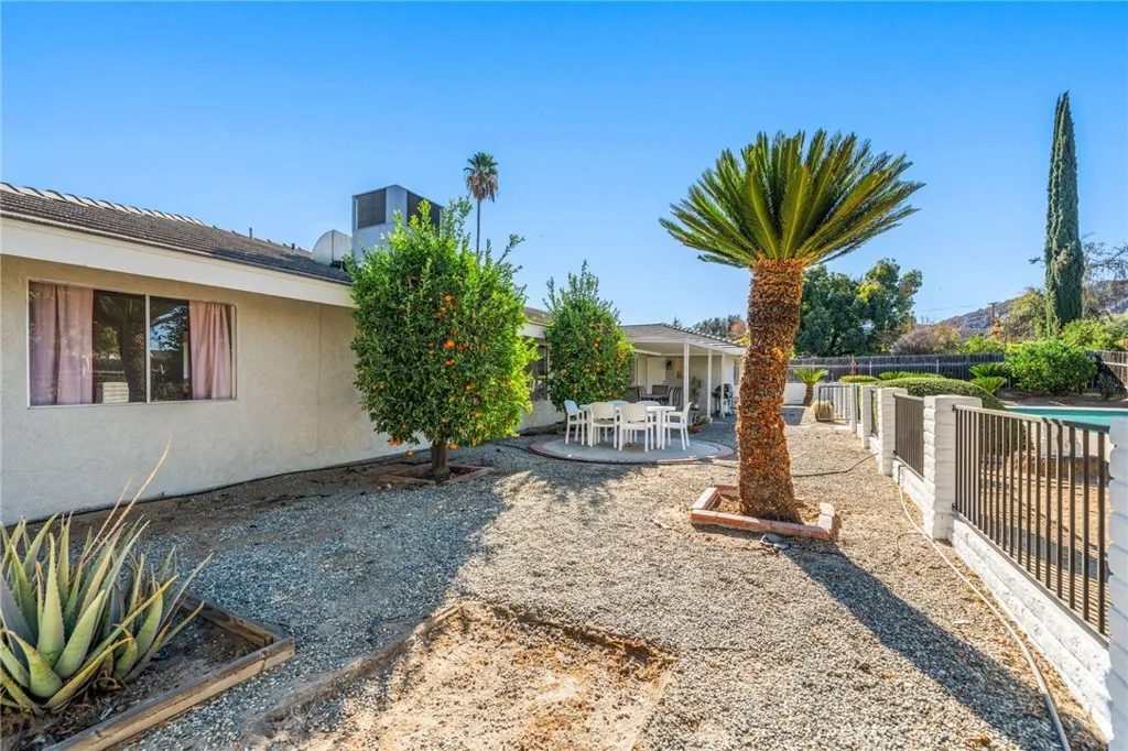 GORGEOUS REMODELED SINGLE STORY 3 BEDROOM POOL HOME ON OVER A THIRD OF AN ACRE LOT!!! SO MANY UPGRADES AND UPDATES INCLUDING THE PRIMARY SUITE HAS BEEN THOUGHTFULLY ENHANCED WITH A WALL ADDITION CREATING A DEFINED SEPARATION BETWEEN THE BEDROOM AND BATHROOM FOR ADDED PRIVACY, NEW mini mud room, NEW HVAC system, NEW appliances, NEW water heater, NEW pool equipment, NEW interior and exterior paint, NEW luxury vinyl plank flooring, NEW lighting inside and out, Whole house fan and so many more updates you need to see to believe. This gorgeously remodeled 2200+ sq ft pool home nestled in a sought-after Hemet neighborhood!!! This beautiful single story 3 bed 2.5 bath home offers 2,247 sq ft of upgraded living space on a 16,553 sq ft lot. Immediately greeted by the grand entrance, the home is bright and inviting with elegant refinement and new flooring and carpet throughout. The spacious living room is perfect for entertaining or relaxing and features a two-sided fireplace opposite another living area. The offset kitchen boasts new appliances, plenty of storage, countertop seating, new lighting, easy access to the formal dining room, and a gorgeous view of the backyard. Retreat to the primary suite with plenty of closet space, ceiling fan, corner windows, and an en-suite bathroom. All bedrooms are bright and spacious with easy access to the upgraded bathrooms. Step outside to your backyard oasis boasting plenty of room for outdoor entertaining, low maintenance landscaping, multiple eating areas, fruit trees, and a gated sparkling pool with new pool equipment and new water within t