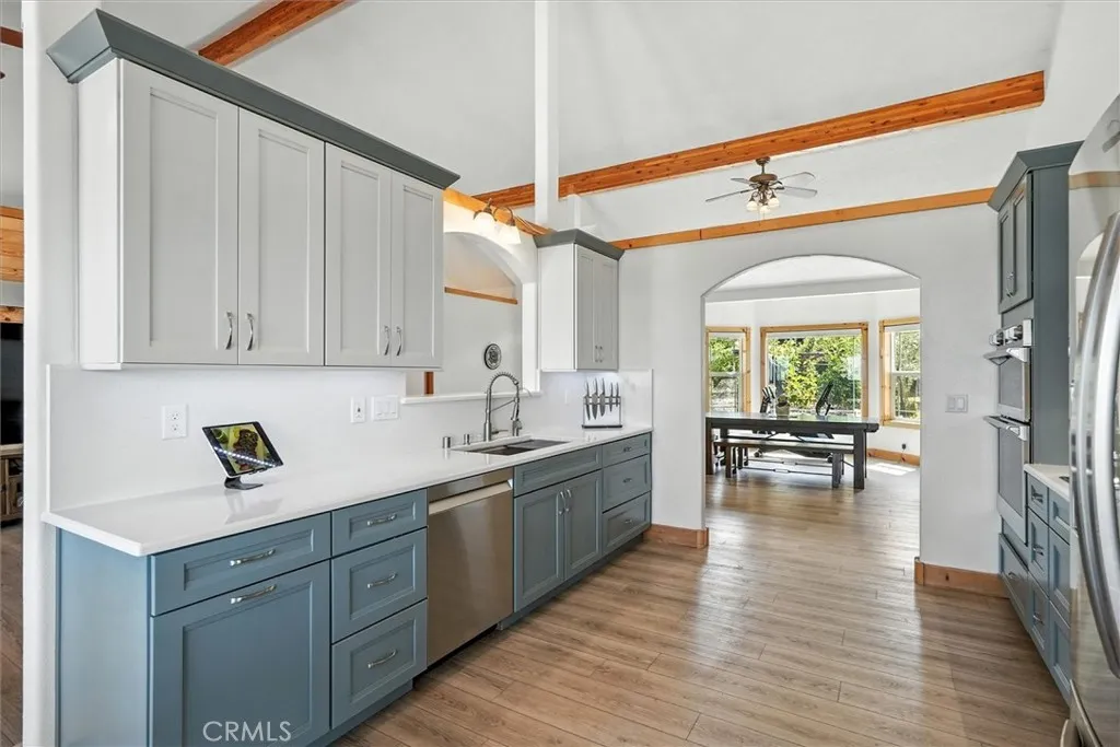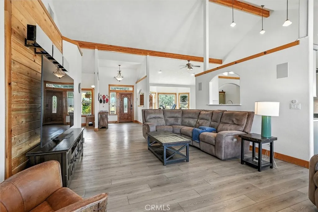 Welcome to your dream mountain retreat! This stunning 4-bedroom, 3-bathroom home offers breathtaking mountain views and a wealth of top-of-the-line upgrades. Step inside to discover elegant LVP flooring throughout, with exquisite Quartzite kitchen counters and sleek new cabinets featuring soft-close mechanisms. Enjoy the convenience of a spacious three-car garage, along with a greenhouse and established raised beds equipped with a drip irrigation system, perfect for the gardening enthusiast. There is a variety of berry bushes, fruit trees, and beautiful landscaping that enhances the natural beauty of this property. The open layout showcases soaring cathedral ceilings, while the main bedroom is thoughtfully separated from the guest rooms for added privacy. Most windows frame captivating mountain vistas, making every moment spent here a picturesque experience. Please note that there are motorized blinds in the primary bedroom, dining room, living room and kitchen! Another wonderful bonus to this wonderfully appointed home. Owned Solar with warranty and battery back up plus EV charging. Home is currently insured by Mercury. Seller's premium is $3,600 per year and is NOT the Fair Plan