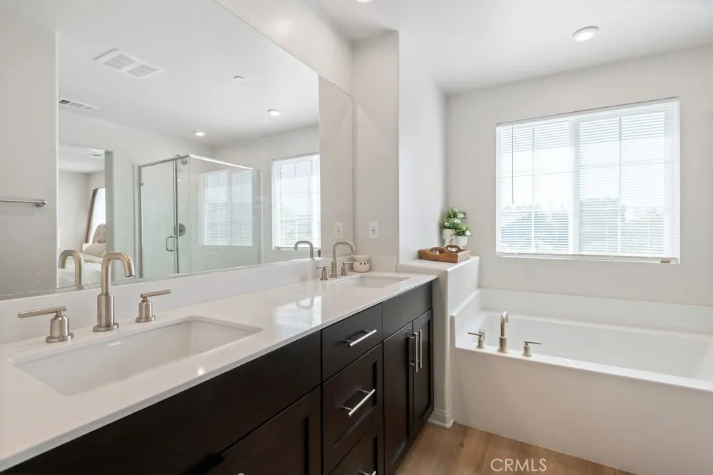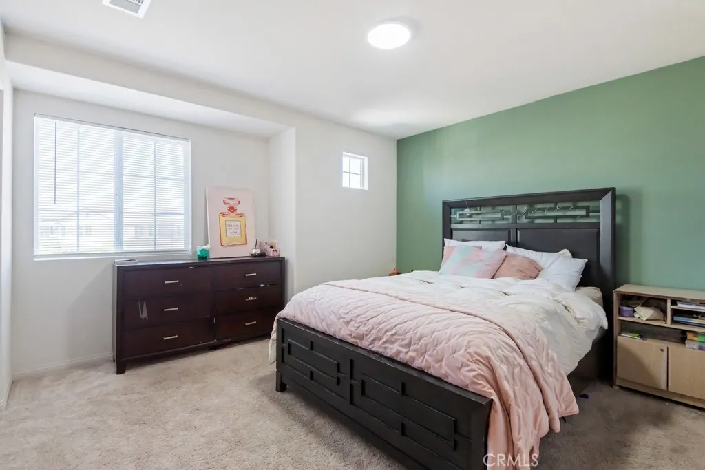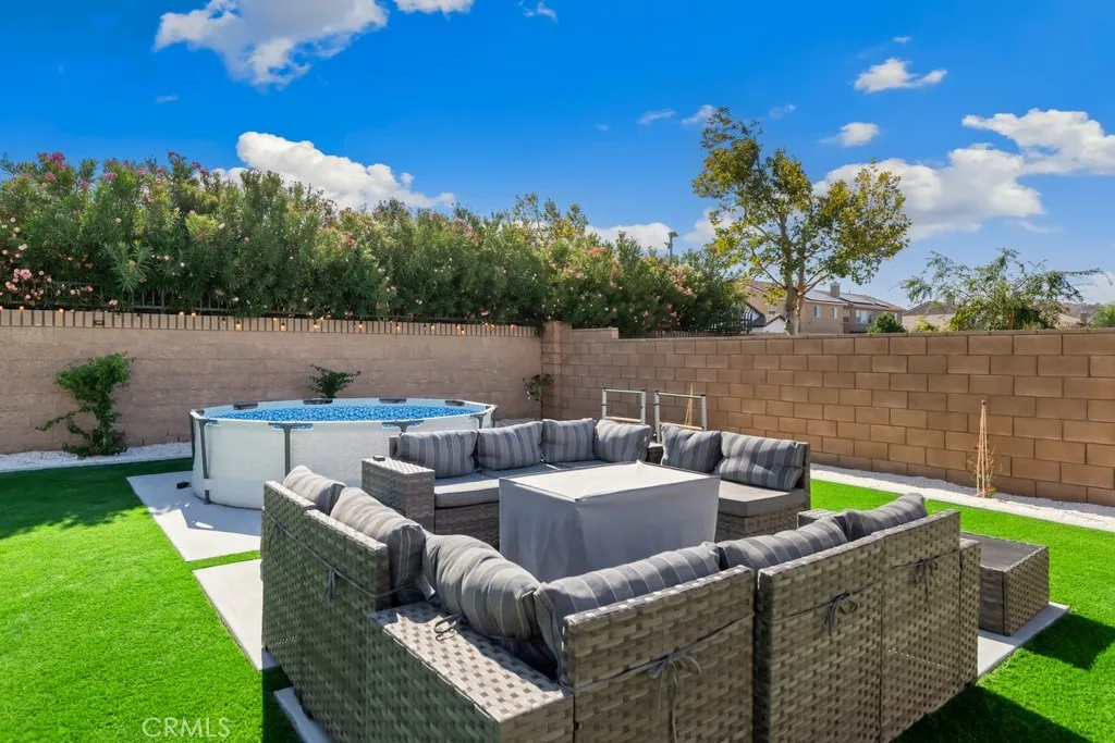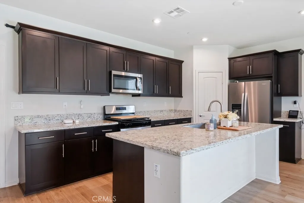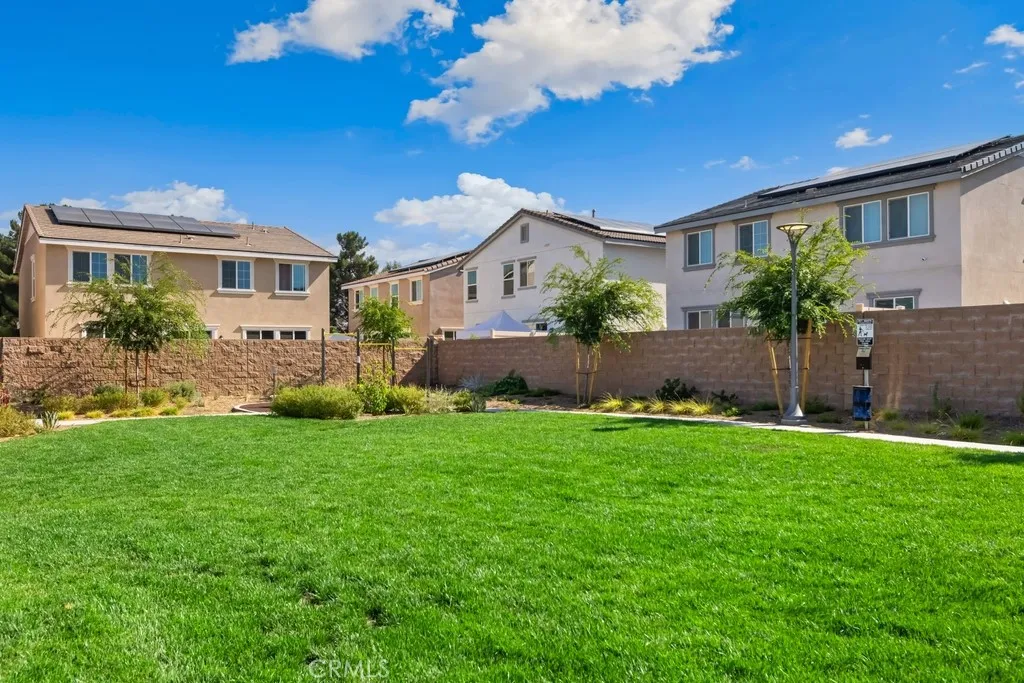 Beautiful 4 bed, 2.5 bath home, recently built in 2023 is ready to be made yours! Located in the Mountain Bridge South Community this home offers Owned Solar Panels, as well as great curb appeal, a spacious interior floor plan with high ceilings, and recessed lights. The Great Room offers lots of natural light with a wall of windows. The living room area opens to the kitchen and dining area. The kitchen features granite counters with a huge kitchen island featuring breakfast bar seating, stainless steel appliances, a pantry, and overlooks the dining area with slider to the backyard. A half bathroom located off of the entry hall, a storage closet, and direct garage access complete the main floor. All of the bedrooms are located on the 2nd floor, along with a large bonus room - great for a game room or movies nights! The huge primary suite has a private ensuite with dual sink vanity, a soaking tub, a separate shower, and a large walk-in closet. There is also a full-size bathroom for the 3 secondary bedrooms to share that offers dual sinks and tub/shower combo, and a laundry room completes the 2nd floor. Enjoy the easy low-maintenance backyard with turf grass, covered patio and gated side yard - this space is ready for the new owner's personal design. Residents also get to enjoy a playground, picnic area, and community grass area. Conveniently located not far from dining and shopping options and located near the foothills of gorgeous Mt San Jacinto!