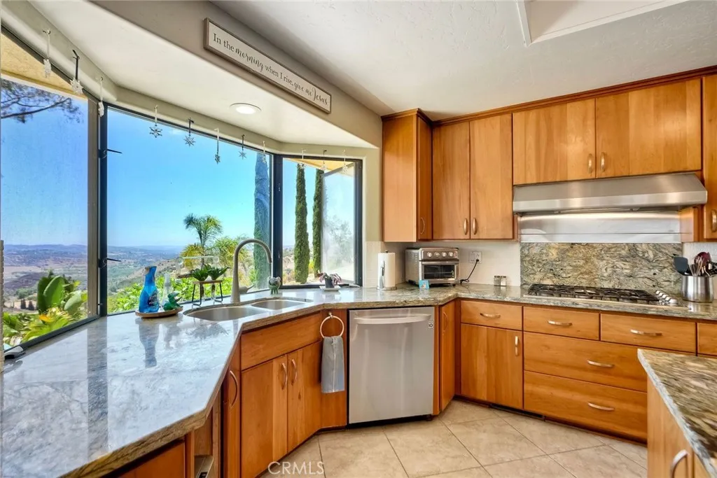 Welcome to this stunning, Mediterranean style gated home! Upon driving through the Solar charged Automatic Gate and up the driveway to the extra large parking area in front of the 3 Car Garage, you immediately notice the gorgeous panoramic views to the West towards the ocean! As you enter on the side of the garage, you'll notice the Stone Tiled Patio area with plenty of outdoor space for entertaining. This area leads to the Double French Doors and into the Sunken Living Room, with real Wood Flooring. While relaxing in the Living Room you'll enjoy the High Beamed Ceilings with Recessed Lighting, Ceiling Fans, Built-In Cabinetry, and a custom Stone Wall Accent around the Fireplace. The Living Room room wraps around to the Formal Dining Room and additional space for an Office with a large window facing West with panoramic views. Next, exit one of the two Sliding Doors from these areas and step out onto the Veranda and enjoy the views and ocean breeze. The Kitchen provides three large windows with amazing views, plenty of custom cabinetry for storage, Blue Fire Brazilian Granite Countertops, a center Island, a Breakfast Bar, and stainless steel appliances. All of the Bathrooms have been completely remodeled with a modern flare with New Flooring, New Vanities, New Lighting, Subway Tiles and Glass Doors in the Showers. The Master Bedroom is located on the main level, so it feels like a single story home. The home provides a useful Central Vacuum System throughout. The Water Heater is brand new. Double Garage Door is Wi-Fi. HVAC system is 9 years old. And lastly, you can enjoy eve