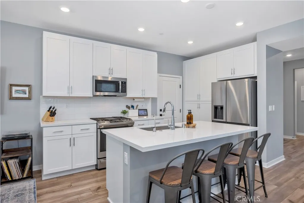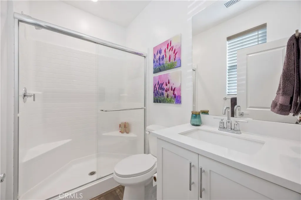 TURNKEY MODERN FARMHOUSE STYLE | 4 BED + LOFT | DOWNSTAIRS BED + BATHROOM | LOW-MAINTENANCE BACKYARD Located in the highly desirable Bedford community of Corona, this gorgeousoriginal-owner home offers understated luxury throughout. The bright and open floor plan begins with a spacious foyer. The gourmet kitchen features a large center island with an abundance of counter space,quartz countertops, subway tile backsplash, white shaker style cabinets, GE stainless steel appliances and farmhouse sink. The open living and dining areas are perfect for entertaining, with a custom built-in sideboard for extra counterspace, luxury vinyl plank flooring, recessed lighting and high ceilings. The main floor also features a private bedroom and bathroom, perfect for guests. The large primarysuite features high ceilings, custom window shades, ceilingfan, walk-in closet, large bath with a dual sink vanity, shower and separate water closet.A large upstairs loft offers plenty of additional living space. Two additional bedrooms share a large full bath with dual sink vanity and a private tub/shower area. Also upstairs you'll find a separate laundry room offering side-by-side laundry and storage shelf.Additional highlights include a 2-car garage with epoxy floors, dual zone central air/heating, and energy-efficient features such as an owned 10 panel 4.05 KW solar system with 26kWh of battery backup, tankless water heater and reverse osmosis water filtration system. Enjoy access to all the Bedford community resort-style amenities, including; three pools and spa, clubhouses, gym, dog park, walking