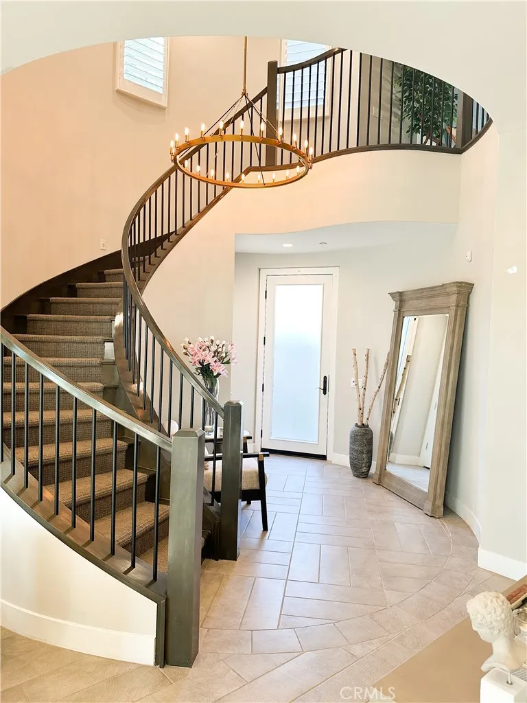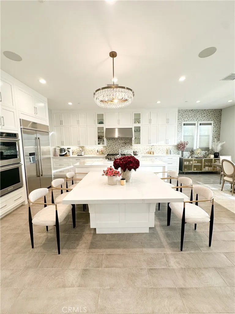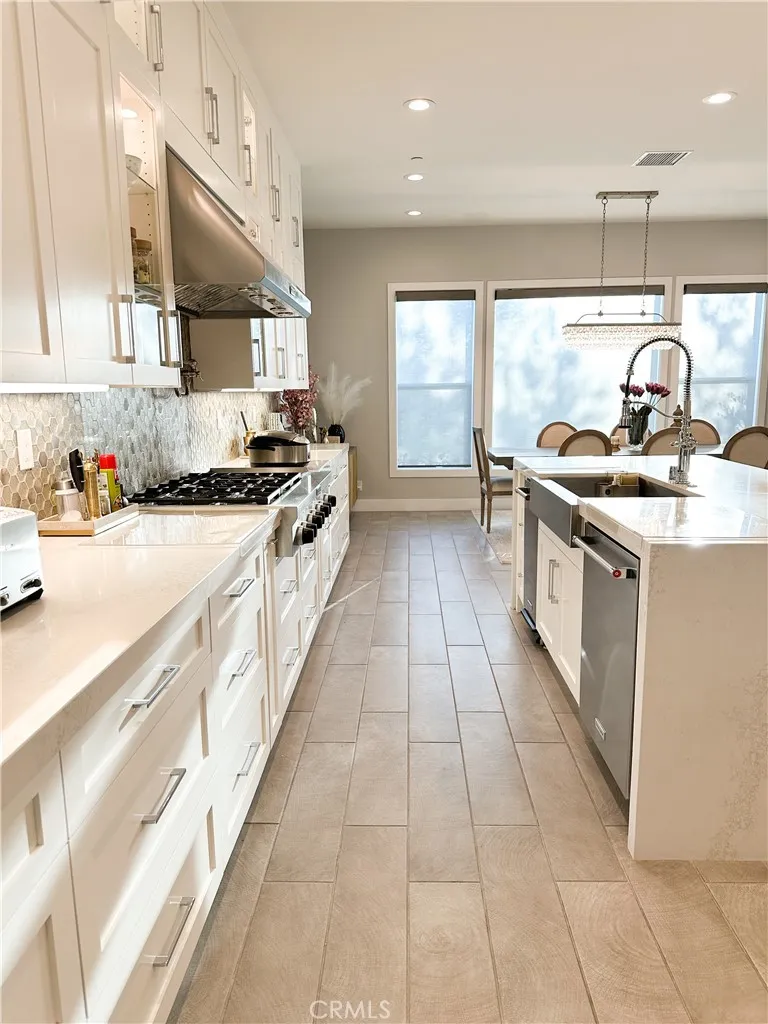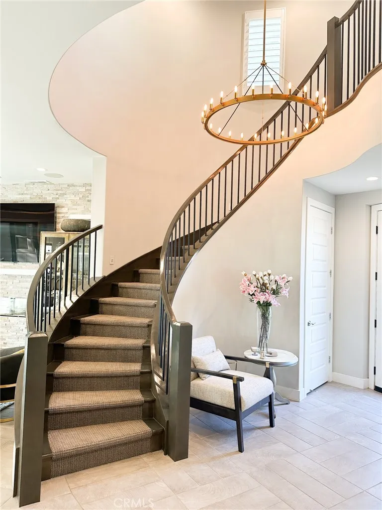 Just like the MODEL HOME everyone falls in love with, this CORNER LOT home with breathtaking VIEWS in the highly sought-after GATED Avila at Porter Ranch community. Conveniently located across from the exclusive Clubhouse with RESORT-STYLE POOL & amenities, this Modern home showcases luxury upgrades throughout. Designed to blend modern luxury and comfort, this home features 5 bedrooms and 5 bathrooms, along with a GOURMET KITCHEN that showcases Calacatta quartz waterfall and an extended island. The kitchen is equipped with built-in JENN-AIR Pro appliances, custom high-ceiling upgraded craftsman cabinetry, and an expansive, captivating kitchen and dining backsplash. The Great Room features a designer linear fireplace embedded into a cream gold stack quartzite wall, an upgrade reserved only for the model homes. Expansive MULTI-PANEL STACKING DOORS in the great room provide the perfect escape to a cozy outdoor living space for seamless indoor-outdoor entertaining with a decked up in-built speaker and woofer system. The primary suite features a private DECK, spa-style main bathroom with his and hers, oversized custom rain head shower, and exotic bathtub, along with quartz blizzard waterfall countertops seamlessly blended into a background of antique bronze mirrors. This tech-savvy home features full automation with CONTROL4 Smart System, upgraded app-controlled lighting and temperature control, an upgraded home theater speaker and woofer system with simultaneous loop play in the great room, kitchen, patio, main bedroom, and loft, indoor and outdoor security cameras, and a centr
