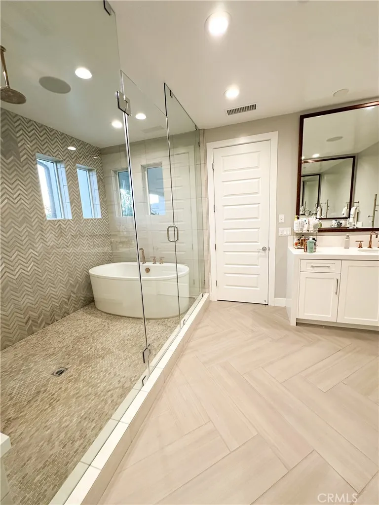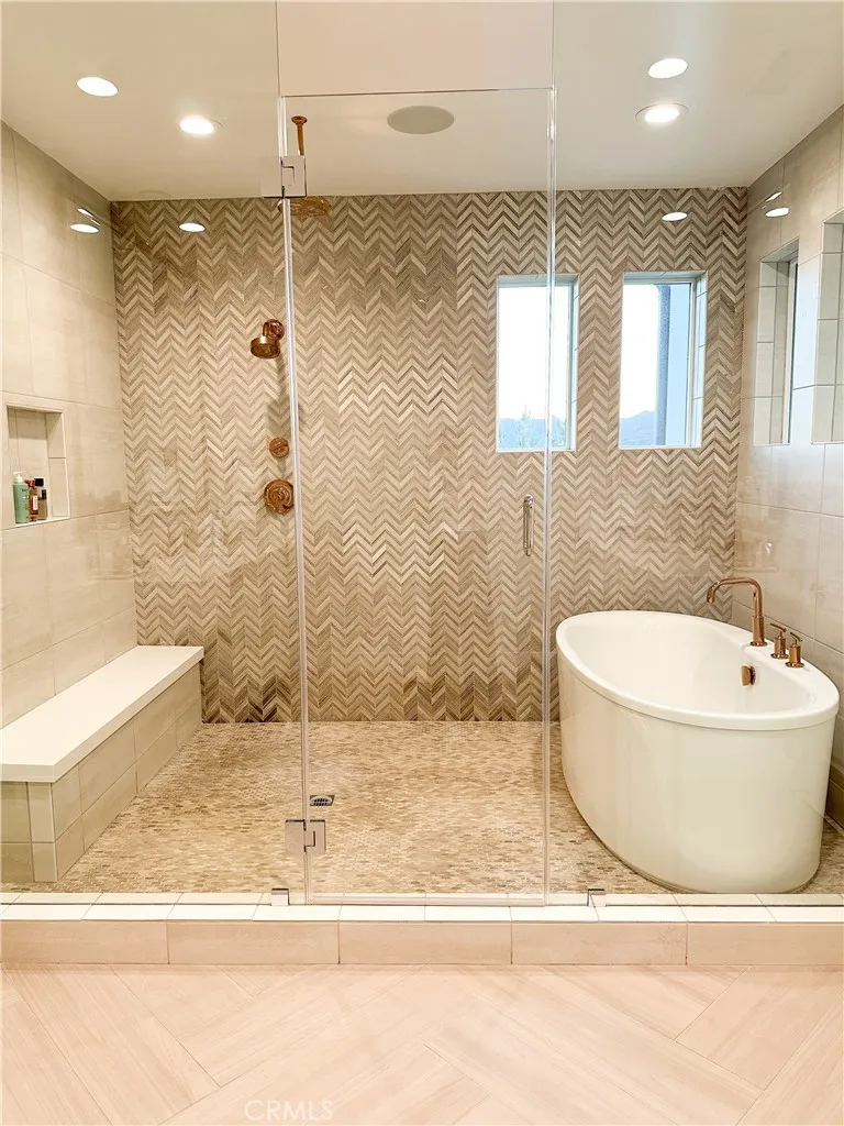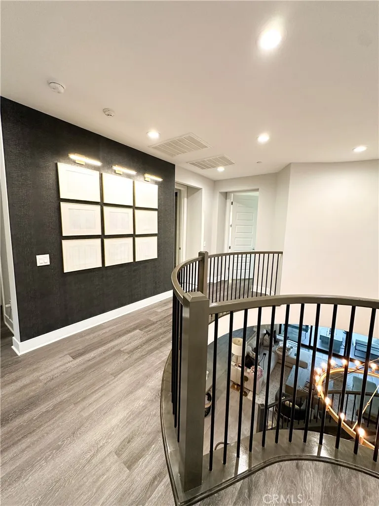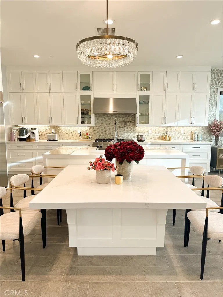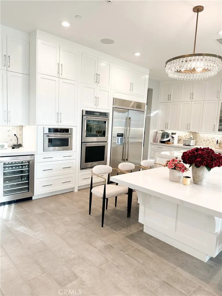 Just like the MODEL HOME everyone falls in love with, this CORNER LOT home with breathtaking VIEWS in the highly sought-after GATED Avila at Porter Ranch community. Conveniently located across from the exclusive Clubhouse with RESORT-STYLE POOL & amenities, this Modern home showcases luxury upgrades throughout. Designed to blend modern luxury and comfort, this home features 5 bedrooms and 5 bathrooms, along with a GOURMET KITCHEN that showcases Calacatta quartz waterfall and an extended island. The kitchen is equipped with built-in JENN-AIR Pro appliances, custom high-ceiling upgraded craftsman cabinetry, and an expansive, captivating kitchen and dining backsplash. The Great Room features a designer linear fireplace embedded into a cream gold stack quartzite wall, an upgrade reserved only for the model homes. Expansive MULTI-PANEL STACKING DOORS in the great room provide the perfect escape to a cozy outdoor living space for seamless indoor-outdoor entertaining with a decked up in-built speaker and woofer system. The primary suite features a private DECK, spa-style main bathroom with his and hers, oversized custom rain head shower, and exotic bathtub, along with quartz blizzard waterfall countertops seamlessly blended into a background of antique bronze mirrors. This tech-savvy home features full automation with CONTROL4 Smart System, upgraded app-controlled lighting and temperature control, an upgraded home theater speaker and woofer system with simultaneous loop play in the great room, kitchen, patio, main bedroom, and loft, indoor and outdoor security cameras, and a centr
