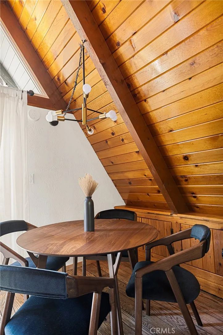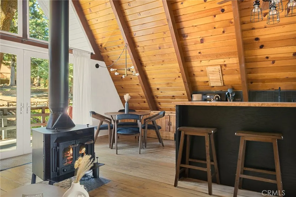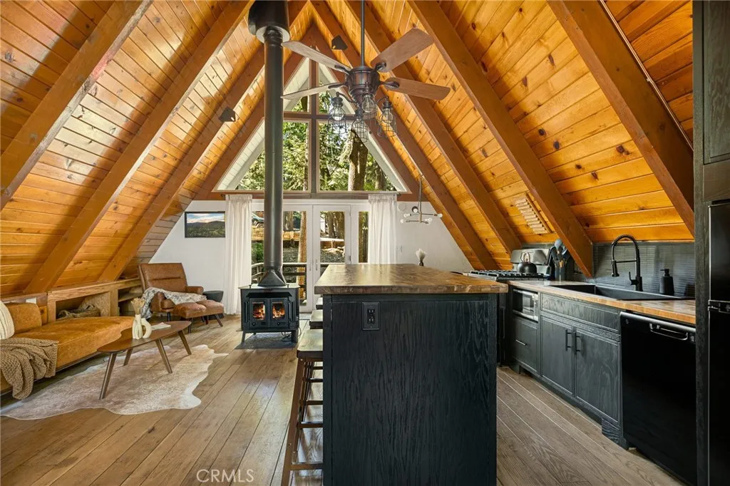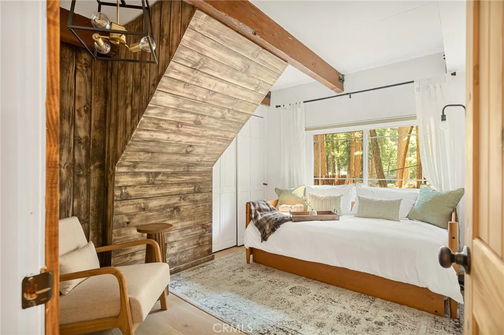 Welcome to your mountain escape! This beautifully remodeled mid-century A-frame cabin blends timeless architecture with modern upgrades. Featuring 3 spacious bedrooms and 1.5 updated baths, this turnkey home offers the perfect blend of comfort and style. Centrally located in the heart of Running Springs, you're just minutes from local shops, dining, hiking trails, and ski resorts making it an ideal year-round retreat or full-time residence. From the striking A-frame silhouette to the warm wood accents and contemporary finishes, every detail has been thoughtfully designed. Whether you're relaxing by the fire, entertaining on the deck, or enjoying the peaceful forest surroundings, this home offers the quintessential mountain lifestyle. Don't miss your chance to own this unique and inviting getaway!
