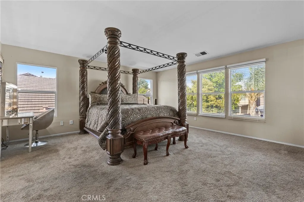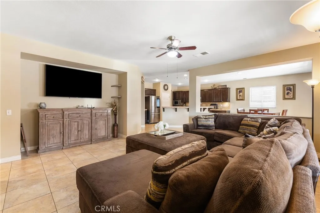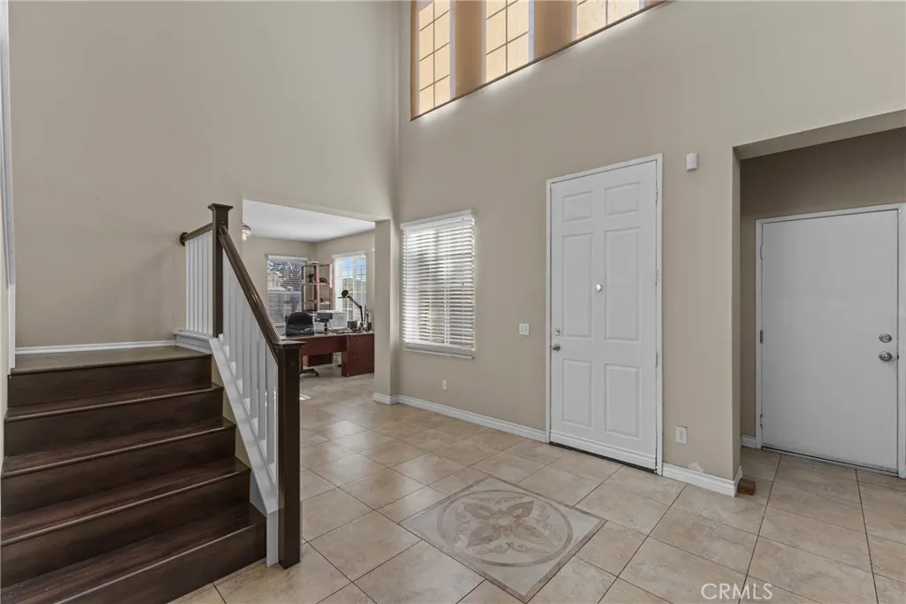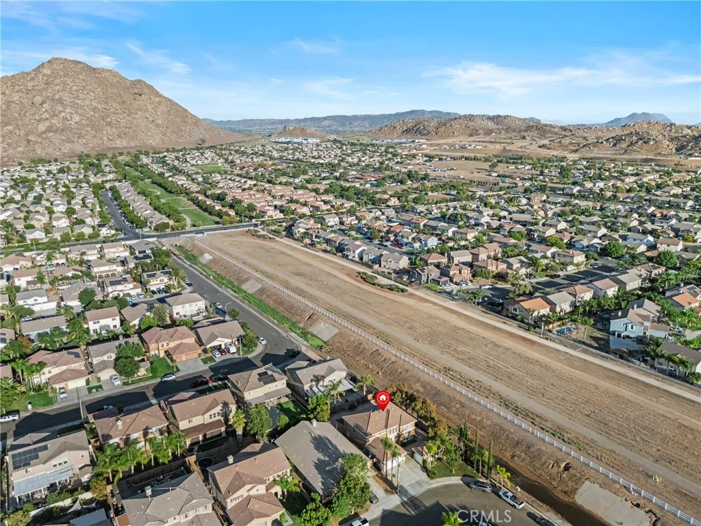 Largest backyard on the block! Home situated on a premium lot with over 9000 sqft. The home is an entertainer with 4 bedrooms plus an upstairs loft that can easily be converted to a 5th bedroom. When you enter you will find a nice sized receiving area, and an office/gym space to the right check out the chandelier lighting in this room, a formal dining room to the left, that connects to the very spacious kitchen, the kitchen also has a second oven very convenient for those large gatherings . The very wide living room is ready to welcome family and friends with lots of natural light and a ceiling fan/light as well. One of the bedrooms is on the lower level with a full bathroom next door. Tile flooring on the first level with hardwood going up the steps and upstairs hallway there is carpet only in the bedrooms. Did I mention the few weeks old AC unit for the upper level? The home has an attached car garage and in addition a one car detached garage as well easily convertible to an ADU. The backyard is the largest on this block with stamped concrete work and raised planters around the backyard, a covered patio with three ceiling fans ready to entertain your guests or simply enjoy peace and quiet. Located in the highly sought-after VVSD, enjoy easy access to a variety of recreational activities 10 minutes to Lake Perris CA, including boating, fishing, hiking, museum and so much more. Plus, with convenient proximity to schools, 215 fwy, parks, shopping and dining, everything you need is just about 10 minutes from home