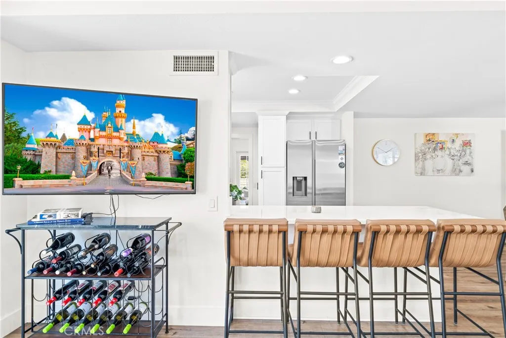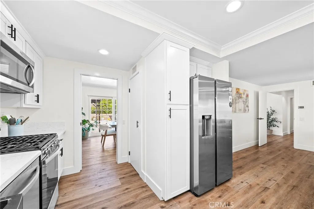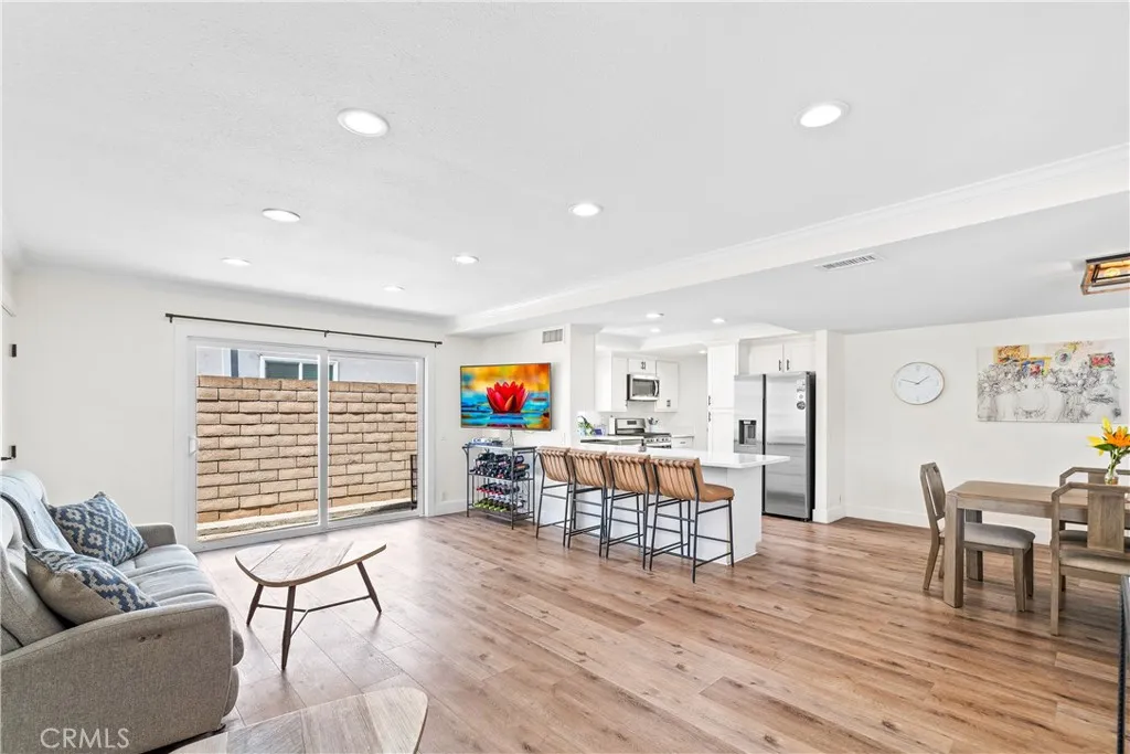 Presenting an unparalleled opportunity for single level pool yard living in highly sought after Mission Viejo. This stunning, turnkey residence is a freshly updated, single-level home, designed for effortless living. With 4 bedrooms, 2 bathrooms, and a meticulously finished 2-car garage with an epoxy floor, 2024 roof, & solar, this property exemplifies ease of enjoyment and comfort. Step inside to find a grand entrance with a vaulted beadboard ceiling which sets a tone of elegance. The open-concept design seamlessly connects the living spaces, which are adorned with luxury vinyl flooring and filled with natural light from dual-pane windows. The renovated kitchen is a culinary enthusiast's dream. It showcases elegant quartz countertops, soft-close cabinetry with convenient pullouts, and high-end stainless-steel appliances. A sizable farmhouse sink, walk-in pantry, and breakfast bar provide both style and functionality, while an adjacent bonus living/dining area offers versatile space. The formal dining room opens directly to the backyard, creating a seamless flow for indoor-outdoor pool party gatherings. The home's serene living extends to a primary suite with elegant fixtures, a charming bay window reading nook with top-down/bottom-up blinds, and dual closets. The accompanying primary bathroom features a walk-in shower. Three additional bedrooms are equipped with ceiling fans and closet organizers, with two providing direct sliding door access to the beautifully landscaped backyard. A private oasis, the backyard features a stylish patio cover and a welcoming oversized swimm