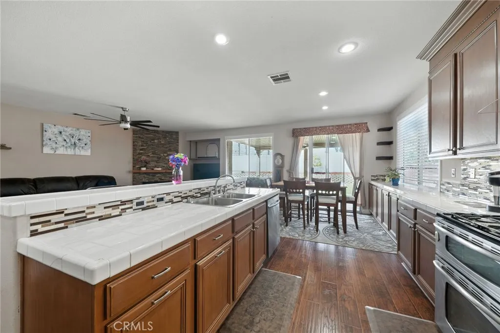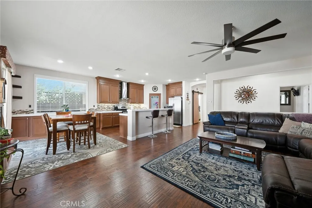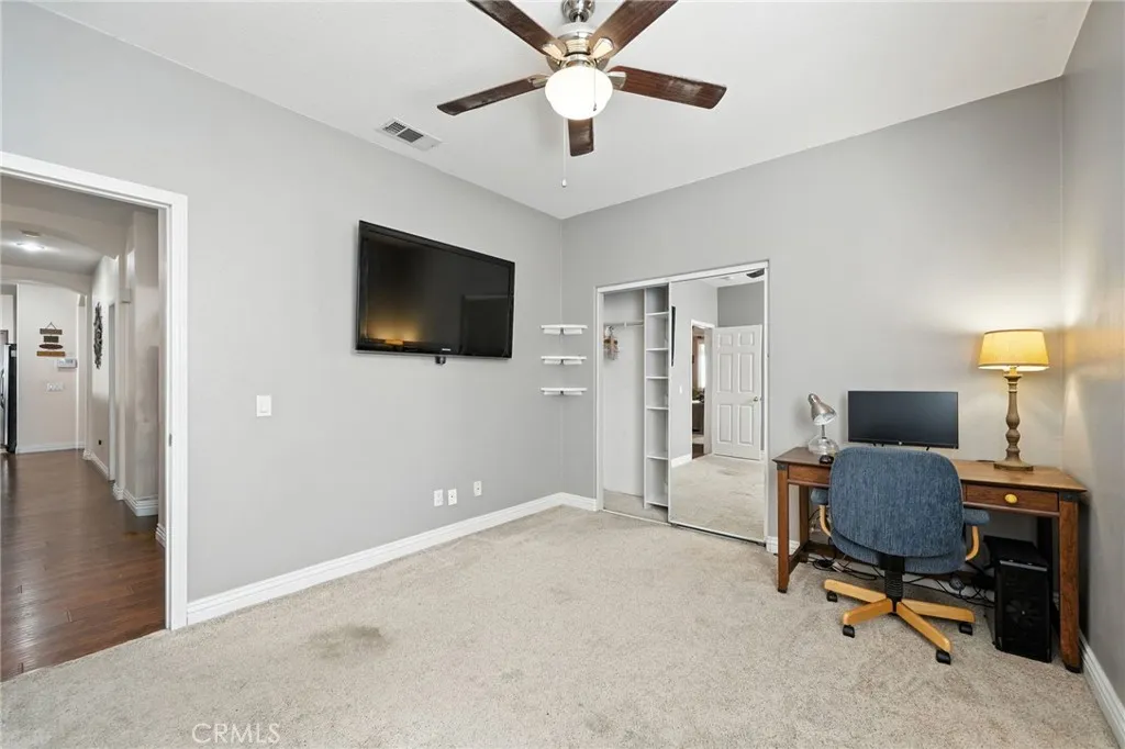 10/6 Price improvement makes this ranch style home with a large lot a buyer's score! With no HOA, and low Taxes...this is worth your time to see! This 3 bd/2 ba (plus a 4th office, den, or 4th bedroom) residence offers an open-concept floor plan that seamlessly connects the spacious kitchen, dining, and family room areasperfect for entertaining or relaxing with loved ones. The kitchen features a walk-in pantry and overlooks the cozy family room, making it the heart of the home. Step inside through the main entrance and you'll find a versatile office space with a stylish barn door, ideal for remote work. Most rooms are adorned with newer blinds, and the flooring throughout is durable laminate vinyl plank, while the bedrooms feature newer carpeting for added comfort. The primary suite is a true sanctuary, boasting a renovated bathroom and a large walk-in closet with custom shelving. Every bedroom is equipped with ceiling fans for year-round comfort, and as a bonus, all mounted TVs and their hardware are included in the sale. Enjoy easy indoor-outdoor living with sliding doors from the dining area as well as the master, that lead to two covered patios, shaded by Alumawood structuresideal for weekend gatherings or quiet evenings. The backyard is a serene retreat, complete with a charming pink lemon tree. Additional upgrades include a brand-new water heater (just 3 months old), ensuring peace of mind and energy efficiency. Lovely clean neighborhood walking distance to schools, close to shopping and growing community. NO HOA AND LOW TAXES!!!!