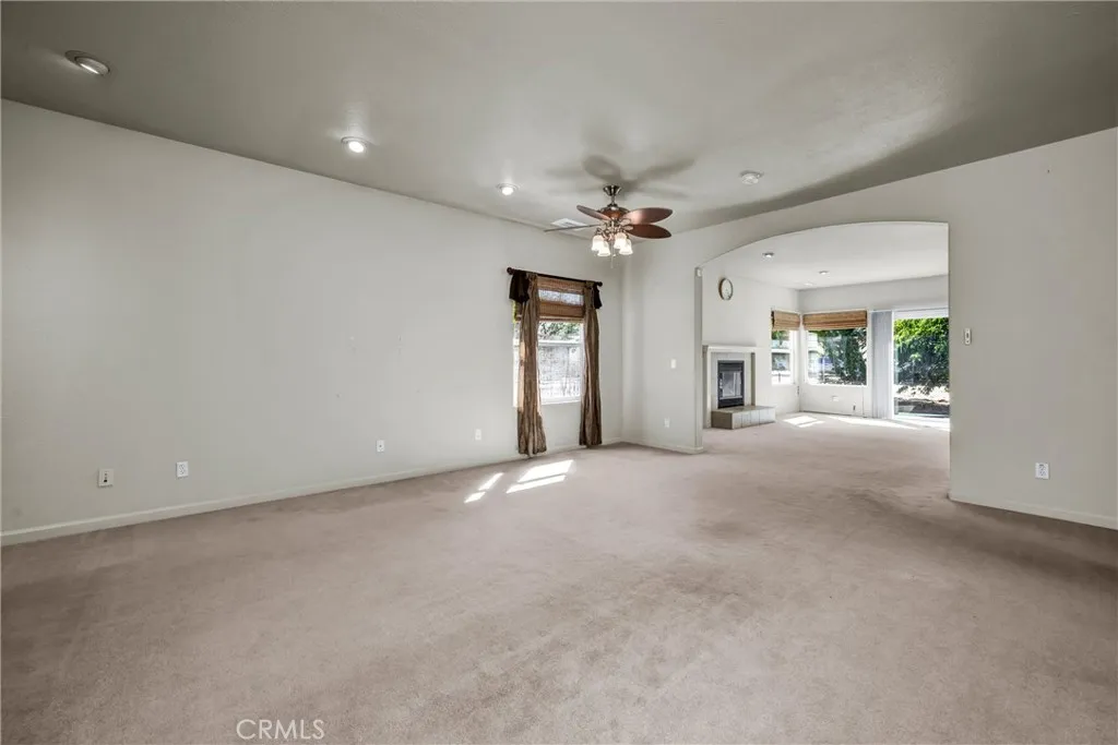 Situated on an impressive corner lot, this expansive single-level home offers a rare blend of comfort and convenience, featuring four spacious bedrooms and no interior stairs. The beautifully landscaped front yard welcomes you, while a three-car garage and an additional circular driveway provide ample parking. Step inside to a generous living room and formal dining area, both enhanced by soaring 9-foot ceilings. A separate family room with a cozy gas fireplace creates the perfect space for relaxing or entertaining. The oversized, upgraded kitchen is a chefs dream, boasting granite tile countertops, a large island with breakfast bar, rich maple cabinetry, premium stainless steel appliances, and a sunny dining nook overlooking the fenced backyard and scenic golf course views. Retreat to the primary suite, where a charming bay window frames tranquil vistas. The luxurious primary bath features dual vanities, a stall shower, linen closet, soaking tub, and a private water closet. Three additional bedrooms and a second full bathroom offer plenty of space. Enjoy outdoor living in the flat, fenced backyardideal for summer barbecues, gardening, or simply soaking up the sunshine. The secondary circular driveway ensures extra parking for visitors or recreational vehicles. This upgraded home also offers an optional SMART control panel, allowing you to manage the thermostat, individual room temperatures, window blinds, lighting, and moreall conveniently from your phone! Dont miss this exceptional opportunity to own a spacious, upgraded home in a desirable location with every amenity you