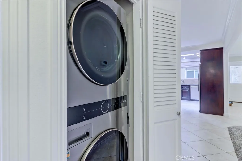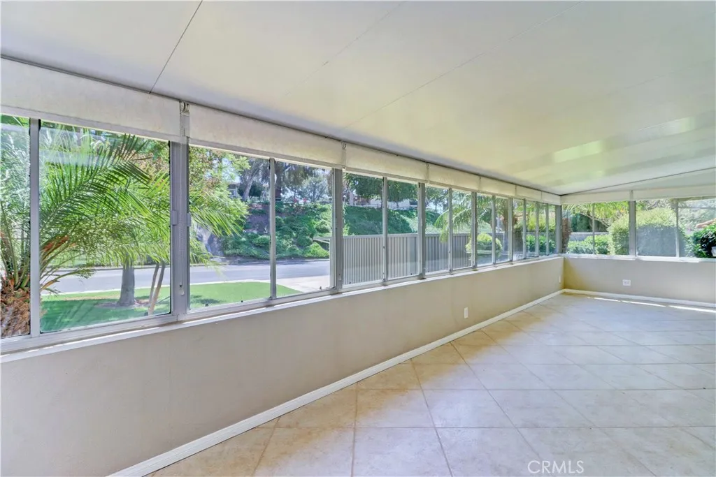 Lovely upper remodeled Casa Vista Condo (2bd/2ba) with a large enclosed sunroom and no stairs. The kitchen has been remodeled with stainless steel appliances, new cabinets, granite countertops, a large skylight and recessed lighting. The windows and sliding glass doors have been upgraded throughout the home. A full size washer/dryer is located in the hall closet for easy access. The primary suite is generously sized for a king size bed and includes an en-suite bathroom and awalk-in-closet.Other features include central air/heating, smooth ceilings, a whole house attic fan, carpet & tile flooring, and parking close by. Located in Laguna Woods, enjoy all the amenities the Village has to offer: 27 holes of golf plus a separate 9-hole walking course, tennis courts, separate pickleball courts, 5 swimming pools, 3 fitness centers, bridge card room, 7 club houses, computer rooms, over 200 clubs to participate in and much more. There is free bus transportation. The unit includes: water, trash, basic cable, landscaping, and exterior building maintenance plus access to all Laguna Woods Village Facilities. You are within 15 minutes of Laguna Beach and extremely close to great shopping and restaurants. Come and see this move in ready home.