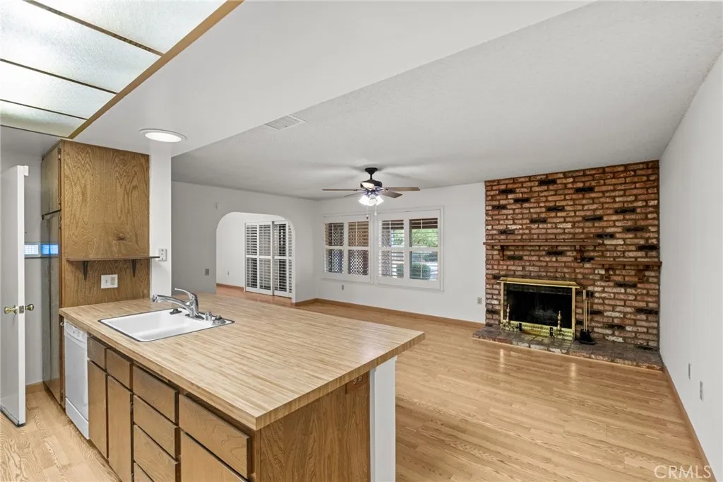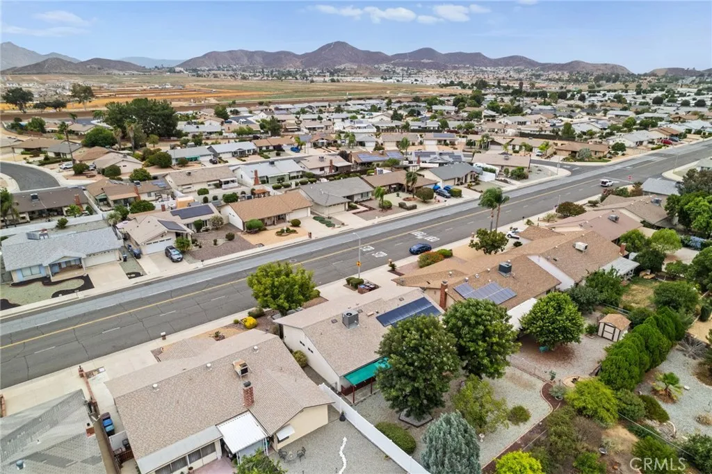 Welcome Home to this very comfortable Senior home. Single level. This home has Solar for VERY low utility bills. There was an add on done at the side of the family room which is permitted (so stated by the owner but not verified) 15'x13' that adds 190 sf. ft. that makes the total floor space approx.1728 sq. ft. and can be used as an extra bedroom/office or is now being used as a formal dining room. The kitchen has plenty of Custom cabinets with lots of storage and lots of prep room with upgraded Kenmore appliances. There is a large fireplace in the family room, perfect for those cool evenings. The interior of the home has a fresh coat of paint. Move right in with little or no fix up. All the windows and the patio slider have beautiful custom plantation shutters. The floors are all vinyl plank. NO CARPET at all for easy maintenance. There is a Whole house fan, great to cool down the home in the evening. This home has a very large INSIDE laundry room with lots of storge. The two-car sized garage has plenty of room for one car and the rest can be used for storage or? The Sun City Association has many amenities, such as two very large, heated swimming pools, lawn bowling, pickle ball, pool room, gym/ex.room, tennis courts and several meeting rooms. Grocery stores, Post office, banks, and Walgreens are just a short walk away. The 215 freeway is less than a mile away for an easier commute. Come enjoy the slower pace, but active and friendly neighborhood that is Sun City Menifee.