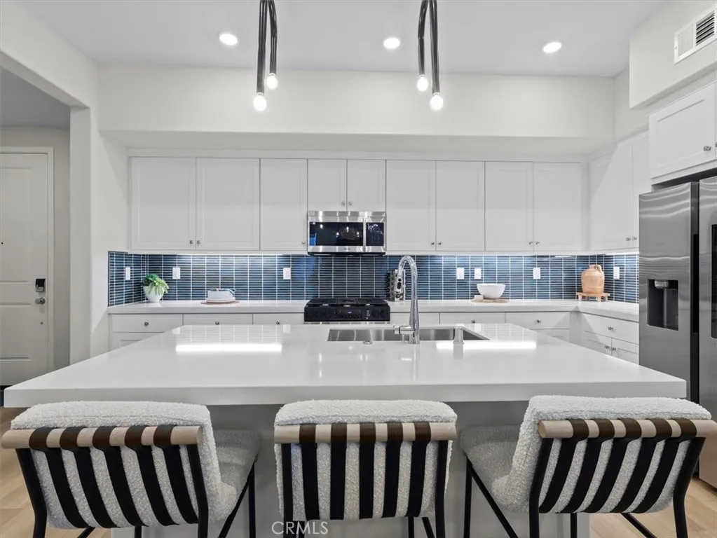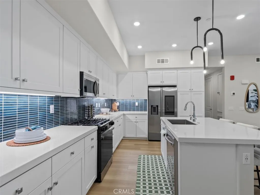 Step into luxury living with this stunning 2 bed, 2 bath condo in brand-new Valencia community. Fully furnished with designer touches and premium appliances, this home is move-in ready and built for comfort. The open layout is filled with light, complemented by paid-off solar panels, an EV charging station, and two tandem parking spaces with detached private storage in the same floor. Resort-style amenities awaitrelax at the sparkling pool, host at the BBQ and party lounge, and enjoy beautifully landscaped common areas. Perfectly located near the I-5, Six Flags Magic Mountain, and Valencia Town Center Mall, every convenience is at your doorstep. This is more than a homeits the lifestyle youve been dreaming of.