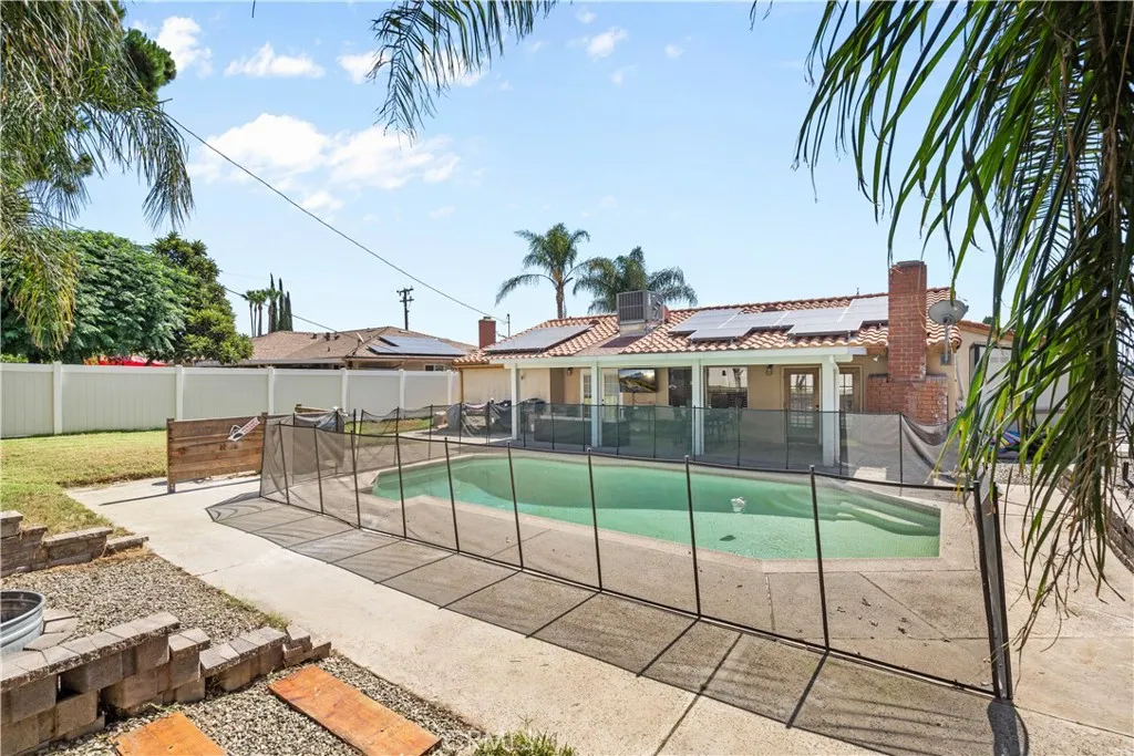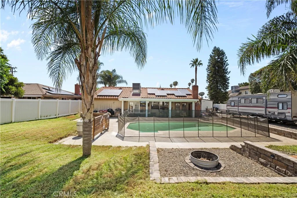 ** OPEN HOUSE ** on Saturday, 8/30, and Sunday, 8/31, from 1 to 3 PM both days. Listed at $620,000, this beautifully maintained single-story home, built in 1968, offers three bedrooms, two bathrooms, and approximately 1,492 sq ft of living space on a spacious 10,000+ sq ft lot. Inside, youll find vaulted ceilings, a cozy fireplace, elegant wood-style flooring, and a kitchen with tile finishes and stainless steel appliances. The master suite features a Jacuzzi-style tub, separate shower, dual sinks, and a walk-in closet. The backyard is an entertainers dream with a sparkling in-ground pool, lush landscaping, large storage sheds, and ample parking for vehicles, boats, or recreational toys, all secured with vinyl fencing. Energy efficiency is enhanced with a solar system, providing significant utility savings. With its thoughtful upgrades, pool, solar, and prime location in a desirable Rialto neighborhood, this home is a rare opportunity not to be missed. Information is deemed reliable but not guaranteed. Buyers and their agents should verify all details, including bedroom count, square footage, and permits.