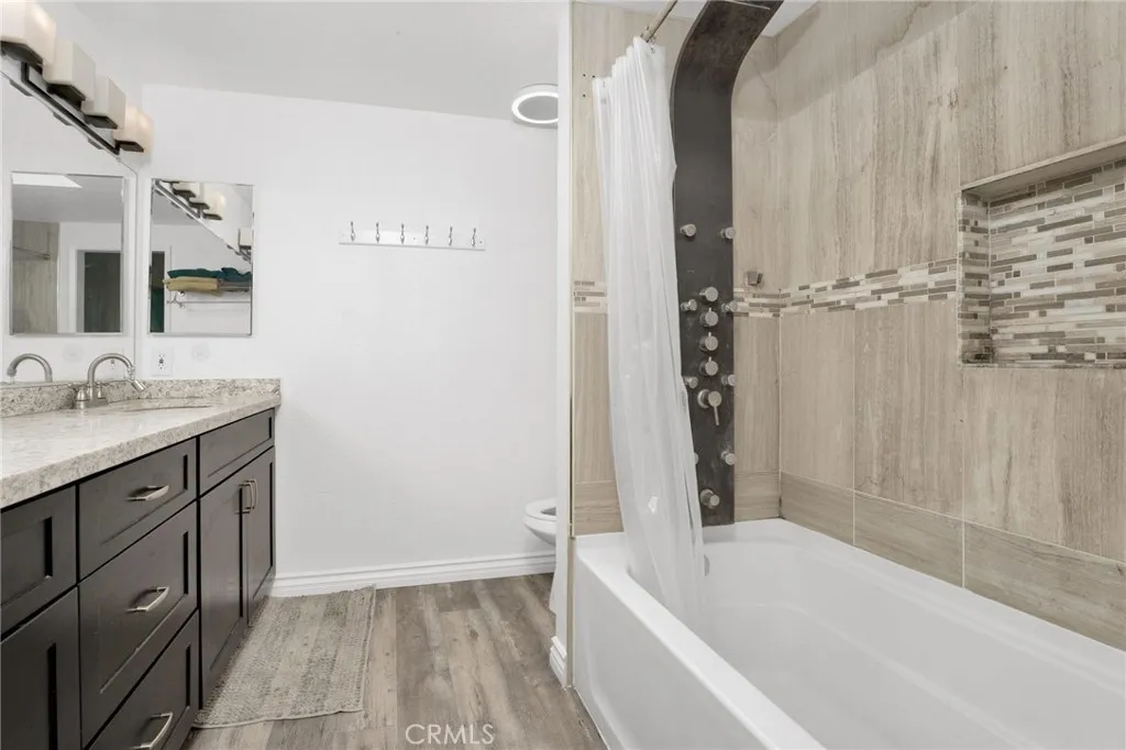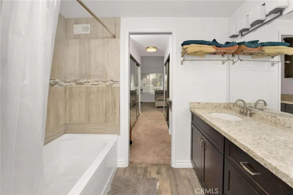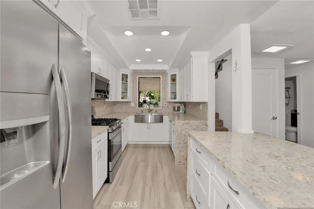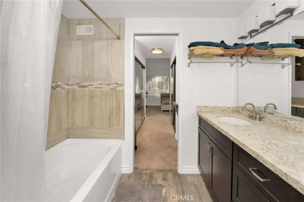 Welcome to The Brooks of Claremont! This beautifully updated end-unit condo is located in a highly desirable gated community, just minutes from the prestigious Claremont Colleges and Claremont Unified schools. Inside, youll discover the largest model offered at The Brooks, featuring a bright and open floor plan with luxury vinyl plank flooring, fresh neutral paint, recessed lighting, crown molding, updated baseboards, and a cozy fireplace. The spacious living room is enhanced by double sliding glass doors that flood the home with natural light and lead to a private patioperfect for relaxing or entertaining. The modern kitchen is a true highlight with crisp white cabinetry, granite countertops, stainless steel appliances (stove, refrigerator, dishwasher, and microwave), recessed lighting, and a breakfast bar for casual dining. For added convenience, this home includes an indoor laundry room and a beautifully remodeled powder room downstairs. Upstairs, the expansive primary suite offers a large walk-in closet and tranquil views of the community pool. The hallway bathroom has been tastefully remodeled with Quartz countertops, dual sinks, new lighting, and an updated shower. A secondary bedroom provides comfort and versatility, ideal for family, guests, or a home office. Community amenities include a sparkling pool and spa, all within a beautifully maintained and secure gated setting. Additional highlights include a two-car detached garage, upgraded staircase, and countless other modern touches. With its prime location, location, location, this move-in ready home blends style,