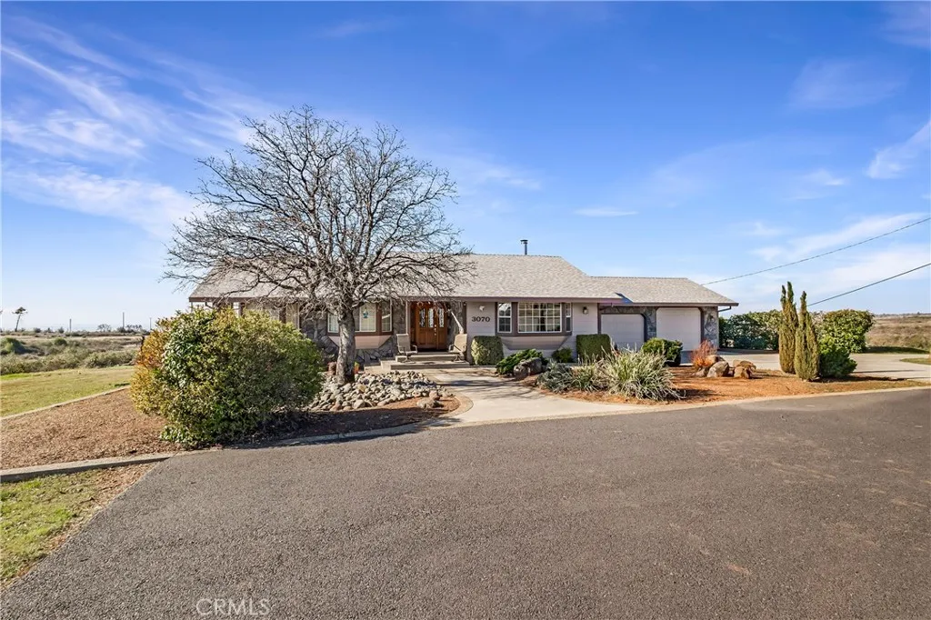 Fantastic Lower Paradise Location for this 15 ACRE property. VIEWS of Chico, Sutter Buttes and the Coastal Mountain Range! Have amazing views every day! Looking for space then this is it! Tons of flat area for a SHOP, ADU or both! This 1990 built home offers 3 bedrooms plus office, 2 baths, 3 car garage with 1/2 bath and third bay garage door being extra tall! There is also an in-ground POOL with incredible views!!! New interior paint, Mannington laminate flooring, Marquis carpet with #8 Pad, bathroom faucets, toilets, garage, kitchen and security lights, GE range, LG front load washer and dryer, Pool Pump, booster pump, filter and safety drains, chimney cleaned, and spark screen replaced. The home offers a large living room with vaulted knotty pine tongue & groove ceiling, bay picture window and a floor to ceiling rock hearth with a free-standing Schrader Wood Stove. Off the living room is the dining area & kitchen. The kitchen offers tons of cabinets, solid surface counter tops, breakfast nook, 7' eating bar and tiled floors. Down the hallway are built in cabinets, spacious guest bedrooms and the office. The primary bedroom has vaulted knotty pine tongue & groove ceilings, views of the valley and a slider to the back deck. The primary bath has dual sink vanity with tiled counters and a tiled step in shower. The guest bath offers tiled counters and a tiled tub/shower combination. There is a cummings back up generator system. The well has a 1000 gallon holding tank. The home is on 9.89 acres and this property is including another undeveloped separate 5 acre property that ru