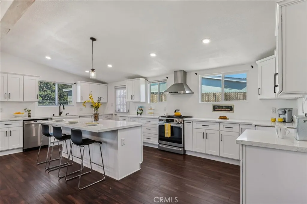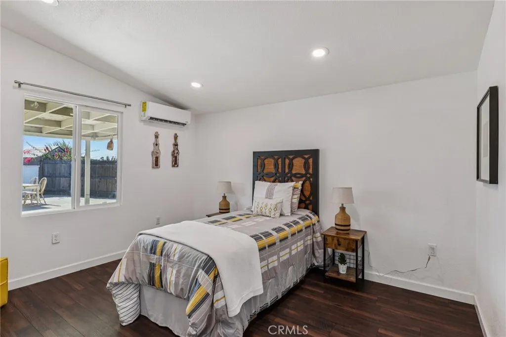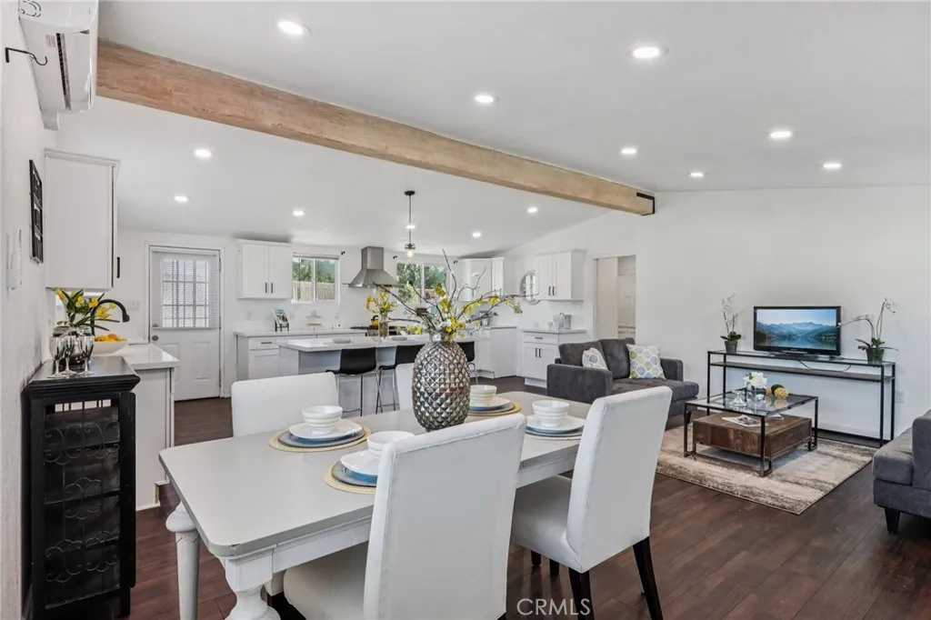 Back on the market *** Buyer didn't perform*** Renovated in 2023, this modern home has been redesigned from the ground up with a bright and airy open-concept floor plan featuring tall beamed ceilings. The interior was fully reimagined with upgraded insulation, dual-pane energy-efficient windows, updated wiring, a brand-new electrical panel, and recessed lighting throughout. Climate control is handled by multiple mini-split air conditioning and heating systems, each operating independently for efficiency. The home was painted inside and out, within the past 3 years, and features all-new flooring. The kitchen was rebuilt with white cabinetry, a farmhouse sink, stainless steel appliances, and a large custom island. The bathrooms were also remodeled: the original bathroom now includes a new tub, shower enclosure, vanity, and fixtures, while the large primary en-suite offers a spacious walk-in shower, modern vanity, and updated finishes. Set on a large lot, the property offers a long driveway with ample parking. Conveniently located near schools, shopping, restaurants, and just a few blocks from the 10 freeway, this home combines thoughtful updates with modern comfort in a prime location. No HOA, come and see this home today!