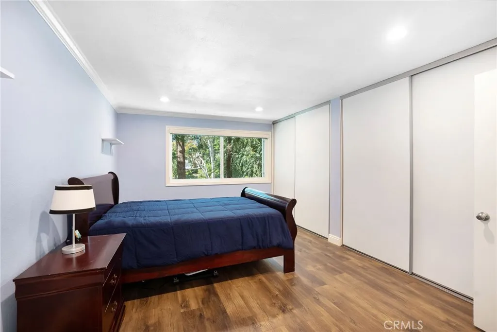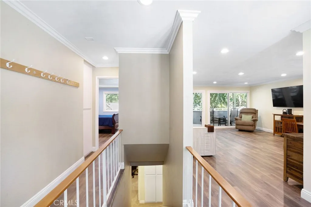 Tucked away in a peaceful, woodsy setting, this hidden gem offers the perfect blend of tranquility and convenience. Surrounded by lush greenery, it feels like a private retreat while still being just moments from shopping, dining, and all that Laguna Hills has to offer.Step inside and youll be welcomed by an inviting open floor plan with custom paint, newer flooring, and updated windows and crown molding throughout. The spacious living room opens seamlessly to a large balcony overlooking the wooded landscapean ideal spot to relax with a morning coffee or unwind at the end of the day.The chefs kitchen is a true centerpiece, thoughtfully designed with style and function in mind. It boasts gleaming granite countertops, stainless steel appliances, a double oven, a convenient breakfast bar, custom flooring, and abundant cabinet space, including a lazy Susan for easy storage. Perfect for preparing gourmet meals or hosting friends and family.Down the hall, youll find a generously sized bedroom with plenty of closet space, along with a beautifully upgraded Jack and Jill bathroom featuring modern fixtures and fresh finishes.When its time to retreat, head downstairs to the spacious suite with double closets, a stylish accent wall, and sliding glass doors that open to a private patio. This versatile room can serve as a primary suite or guest quarters. The third bedroom adds additional flexibility, complete with a clever built-in Murphy bed that makes the space both functional and inviting.Dont miss the opportunity to own your own piece of paradise in Laguna Hillswhere comfort, conveni