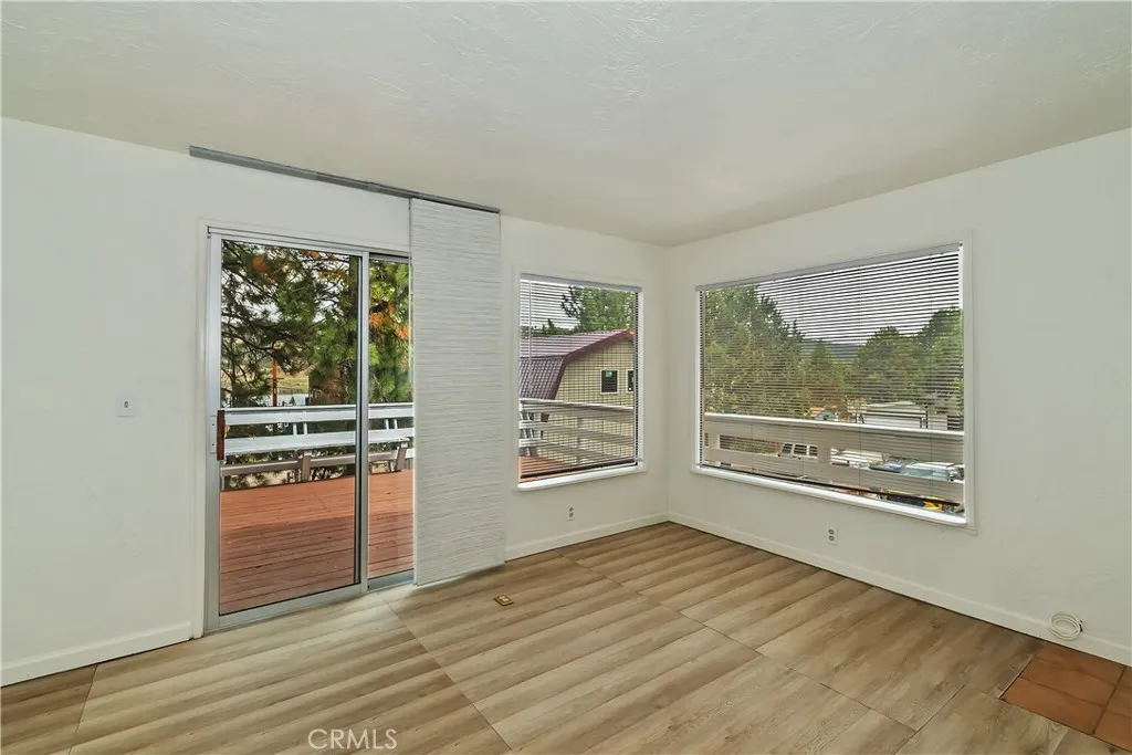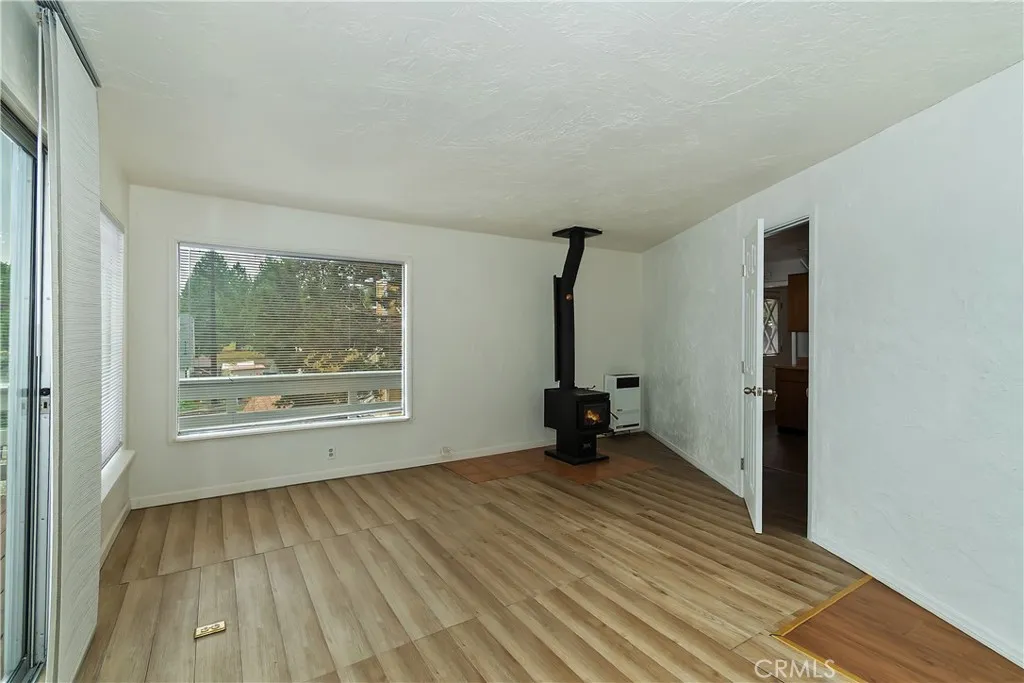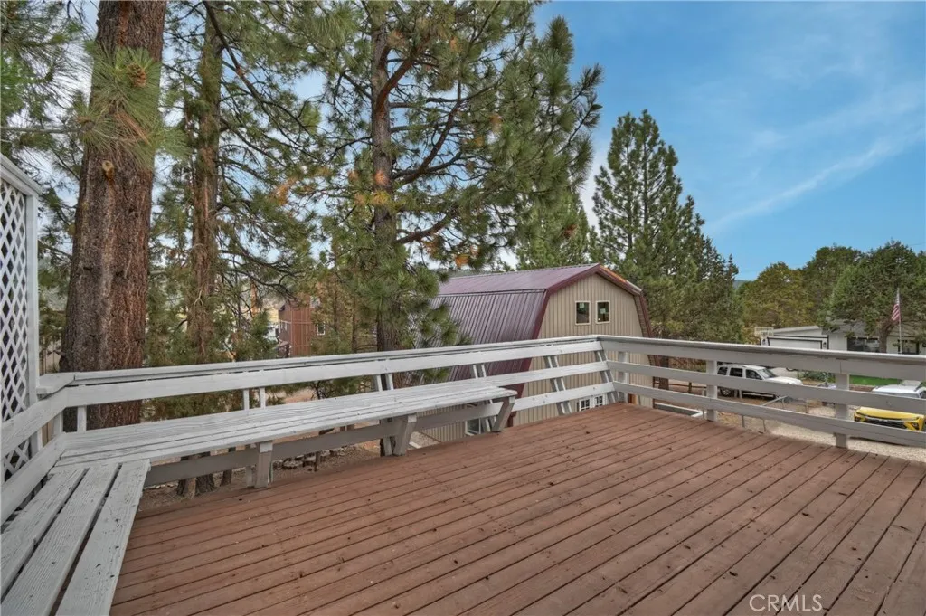 Tucked away on the quiet side of town, this cozy Big Bear home is just 10 minutes from shopping, schools, dining, and all the outdoor activities the valley has to offer ~ Its the perfect spot for anyone looking to enjoy mountain living without giving up convenience ~ The home has had some nice updates throughout, making it move-in ready while still leaving room for you to add your personal touch. Seller has walled off the living room and is currently using it as a second bedroom, without a closet, buyers option to keep it that way; or buyer may remove the interior non-structural wall and turn it back into a living room ~ Level parking means easy access year-round, no steep driveways to worry about in the winter ~ Youll love relaxing on the back deck with your morning coffee while listening to the wind in the pine trees ~ Close Proximity to the National Forest, just across the street for evening strolls as the sun sets ~ Underneath the house youll find a workbench and extra storage space, perfect for keeping tools, bikes, or seasonal gear organized. The yard is easy to maintain, giving you more time to enjoy the mountains instead of working on upkeep ~ Whether youre ready to buy your first home or looking for a place to settle into full-time, this property offers comfort, convenience, and the chance to make Big Bear your everyday escape.