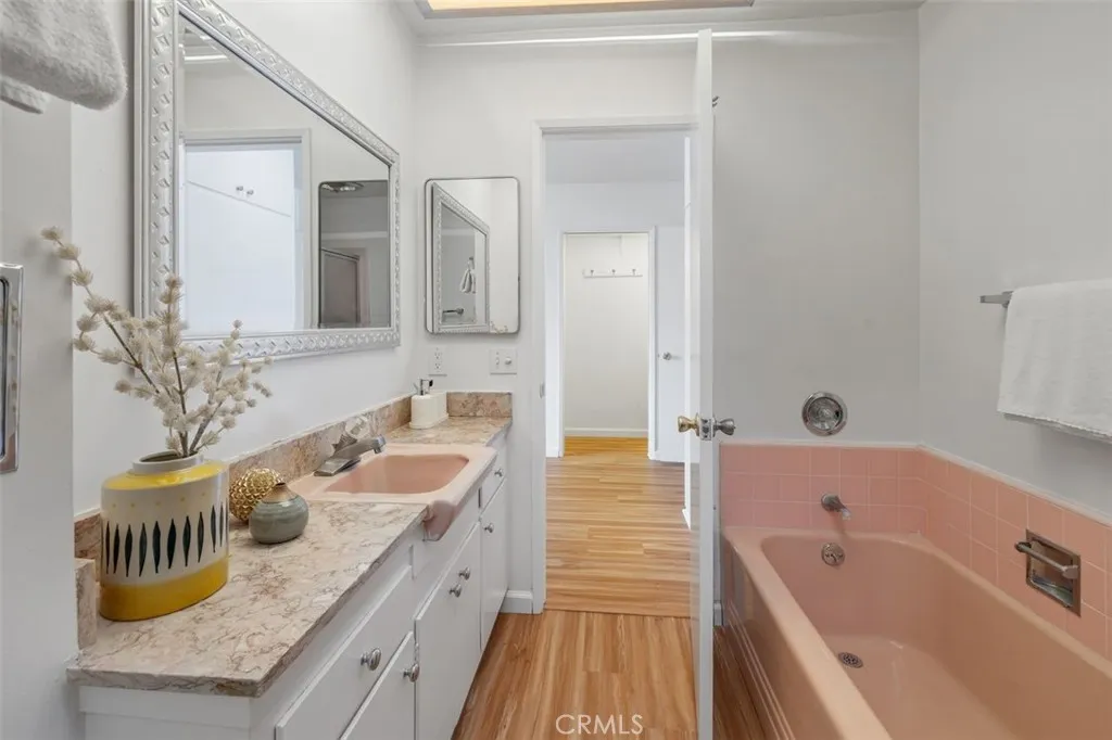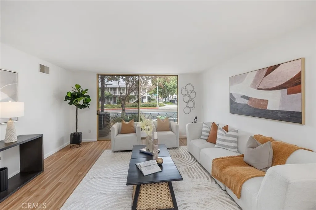 Whispering Waters, c. 1960, a Pasadena Historic Landmark and one of the area's most beloved Mid-Century Modern properties, was designed by noted developer Lionel V. Mayell with views of the San Gabriel Mountains and city life right outside. This Mid-Century Modern gem is located just off the renowned South Lake Avenue shopping district. This is an end-unit on the ground floor with TWO bedrooms and TWO bathrooms that have been updated and remodeled. Floor-to-ceiling glass doors invite sunlight to brighten any day. All this within +/- 1,200SF of living space. Need storage? Oh, so much storage here with shelving, drawers, and closets! The north-facing patio offers views of the San Gabriel Mountains and evening sunsets. The bright and updated kitchen offers plenty of room to whip up a fantastic meal. The underground parking offers your very own garage! The garage has enough space for a single vehicle and room for overflow storage. Enjoy easy access to Pasadena's most popular shopping, dining and cultural institutions. Caltech, PCC and so much more are just outside your secured and gated front door. Water utility is included in HOA fees. The Mills Act designation offers owners reductions on annual property taxes. This is a rare opportunity to live in a space that makes Pasadena famous. Come live in a landmark!