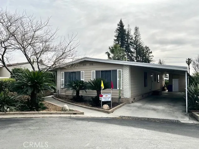 Hidden Gem! This private inside corner home is located at the end of a loop with limited traffic. At 1440 Sq ft, this 1978 Royal home has great curb appeal featuring an extra-large front yard with mature palms, lush landscaping and new exterior paint. Youll love sitting out on the private front porch with natural stone water feature. This home includes NEW HVAC, 2 bedrooms, 2 baths with family room. The large open living and dining areas have plenty of windows letting in tons of natural light. The vintage kitchen features built in bar/peninsula and includes the fridge. The family room has a slider to the porch and a bookcase with hidden compartment behind. Imagine showing your guests your very own mini speakeasy! The laundry room with included washer/dryer has plenty of storage with a door to the carport to easily get groceries in from your car. The guest bedroom features a Jack and Jill bathroom with oversized walk-in shower. The light filled primary bedroom features a large, mirrored closet. The attached bath has a glass step-in shower stall and a separate tub to relax in. The full-length carport includes a storage shed. Dont delay in taking a tour!