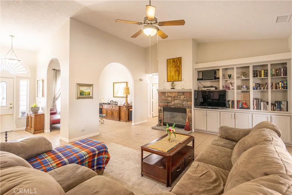 This stunning 2-acre property features a large circular driveway and a grand entrance to a 2,623 sq ft home with an open floor plan and an upgraded kitchen. Boasting 4 spacious bedrooms, 2 bathrooms, and a 3-car attached garage, this home offers ample space for both comfort and convenience. RV parking is available on both sides of the home. As you step inside, youll be greeted by beautiful tile flooring, a formal dining room, and a spacious living area with vaulted ceilings that create a bright, airy atmosphere. The living room is highlighted by a gorgeous stone fireplace with built-in shelving for books and storage. The kitchen is a chefs dream with stainless steel appliances, granite countertops, a large center island, glass backsplash, and a generous pantry. Adjacent to the kitchen is a cozy breakfast nook. The master bath features dual sinks, a Jacuzzi tub, and stylish overhead lighting that spans across the vanity area. Throughout the home, no detail has been overlooked, with high-quality vinyl shutters and ceiling fans in every bedroom. The backyard is perfect for relaxation, featuring a covered patio and a cross-fenced area with trees along the fence line. Theres also ample space in the back of the property to build an additional dwelling unit (ADU), offering great potential for expansion. Dont miss out on this exceptional opportunityit wont last long!
