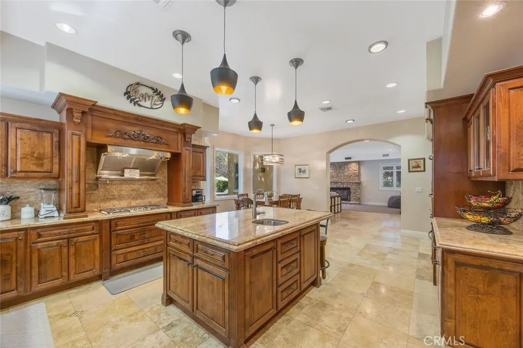 Stunning Custom Estate in Placerita Canyon Swimming Pool, Spa, 3 car garage plus 2 car detached garage (potential ADU or Pool home) and RV Parking with access road!! 5 luxurious bedrooms, 4 full bathrooms and 2 convenient powder bathrooms and bursting with top notch designer finishes! This regal custom estate is nestled in the highly desirable Placerita Canyon community adjacent to Masters College, open space preserve hiking and equestrian trails! The elegant entry is unforgettable with iron adorned glass door, winding staircase, and unforgettable stone tourette which opens first to the stunning home office complete with 2 story ceilings and overlooks the gas fireplace and treelike neighborhood! MAIN FLOOR FULL BEDROOM AND BATHROOM, incredibly thoughtful design and luxurious finishes! At the heart of the home, the chefs kitchen boasts extra thick beveled granite countertops, stainless steel appliancesincluding cooktop, ovens, and dishwasher, Jenn-Air Subzero refrigerator/freezer! Complete with glass accented see through cabinetry, butler's pantry, wet bar, walk in pantry, designer lighting, reverse osmosis filtered water, pot filler at the range and pool views... The kitchen seamlessly opens to the living area, creating a perfect space for large gatherings and cozy, everyday living! Upstairs, you will find tines hardwood flooring across the loft and hallways leading to spacious secondary bedrooms with a Jack-and-Jill bathroom plus a convenient half hall bath and home gym/ 4th upstairs bedroom! The grand primary suite emanates a resort style vibe featuring private balcony ov