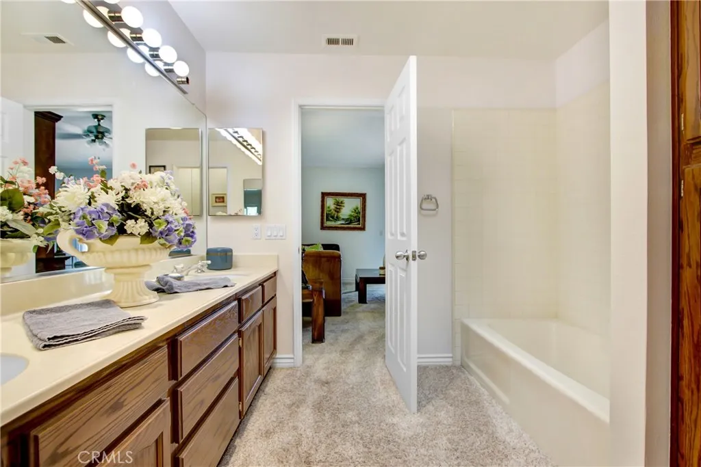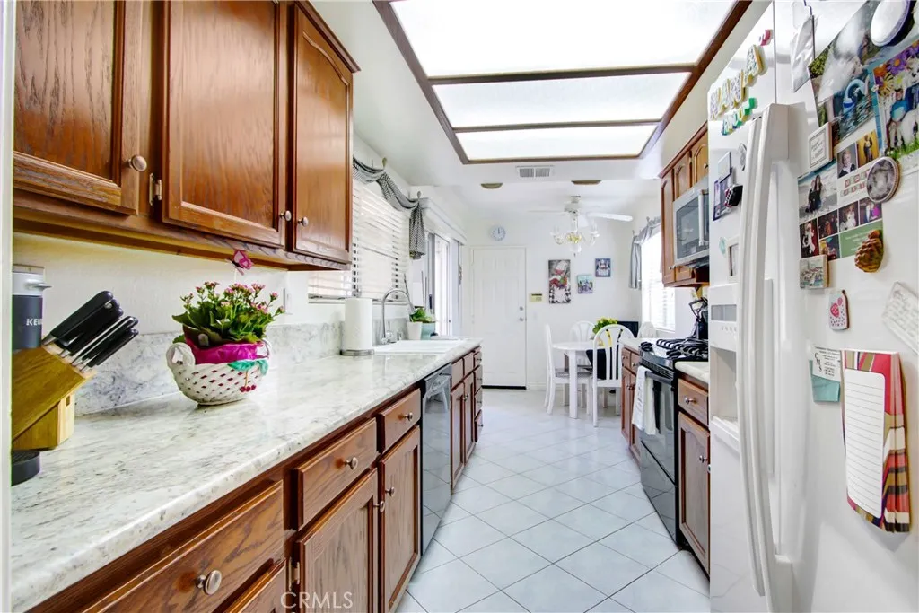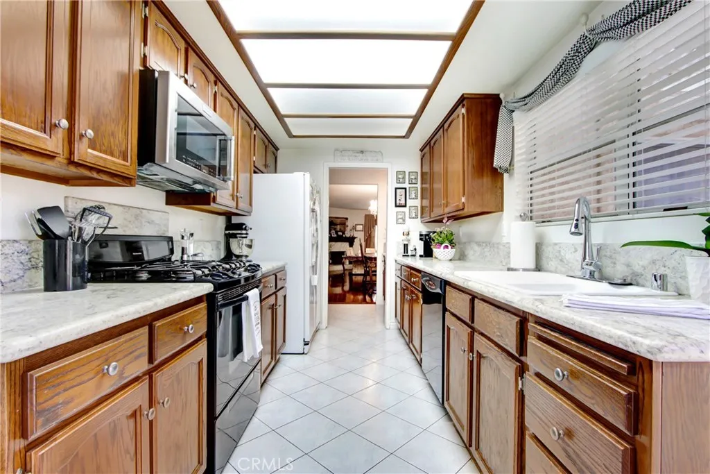 Spacious 3-bedroom, 3-bathroom condo offering comfort, functionality, and style throughout. This home features two master suites upstairs, each with its own private bath and elegant marble flooring, plus walk-in and wall closets for ample storage. The main living area showcases a cozy fireplace and rich hardwood floors that extend seamlessly through the downstairs. A third bedroom downstairs provides versatile space for guests, family, or a home office. The galley kitchen is complemented by a pantry bar area, ideal for entertaining, and opens to a charming tiled patio filled with natural light. Additional highlights include several skylights, an attached two-car garage, and thoughtful modern finishes throughout. This inviting condo perfectly balances warmth, convenience, and sophisticationready for you to call home.
