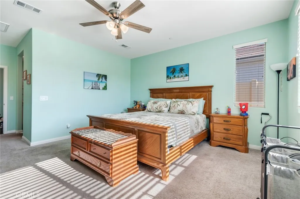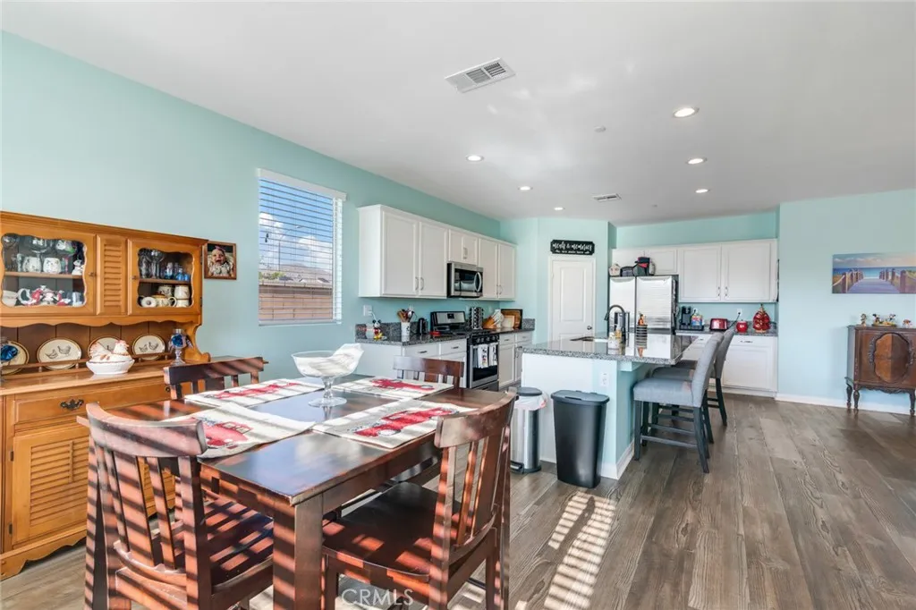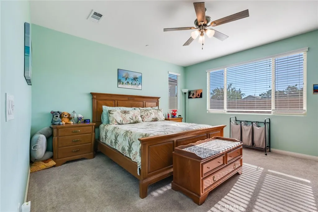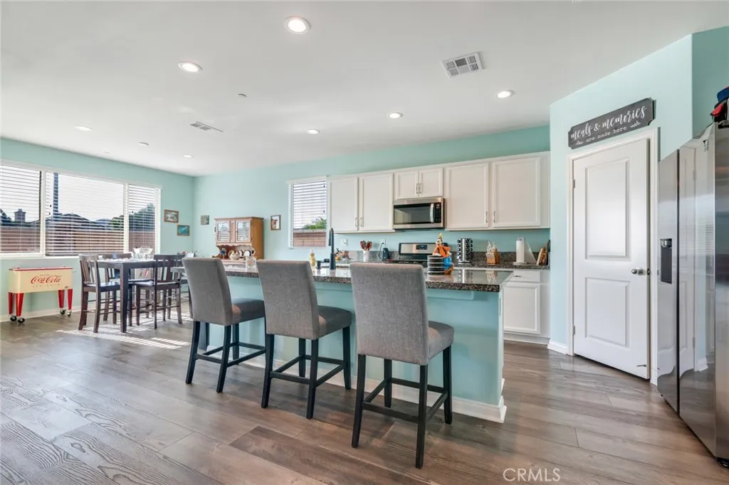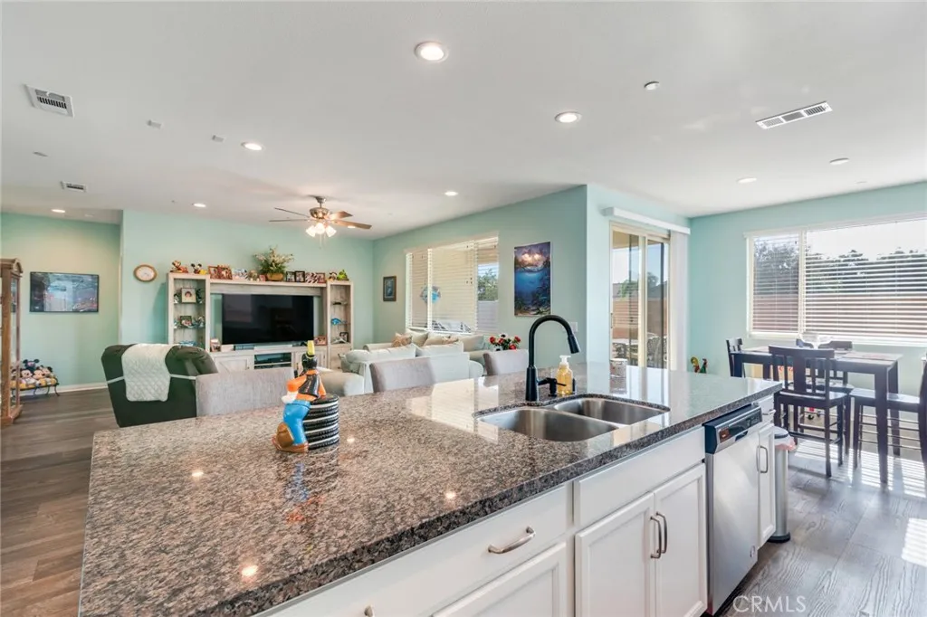 Welcome to Banner Park!! This well-maintained 3 bedroom 2 bathroom home has many upgrades and also has a flexi-room with double doors. The floor plan in an open concept and is designed for modern living. In the kitchen you will find granite counte tops, an island, and ugraded faucets. Throughout the home there is upgraded vinyl flooring with carpet in the bedrooms and flexi room. You will find recessed lighting throughout the home and the family room is wired for surround sound. The main bedroom has a walk-in shower, 2 single vanities and a walk-in closet. There is a separate laundry room with a washer hookup and gas dryer hookup. The 2 car attached garage features epoxy flooring. The front yard is landscaped with a sprinkler system and the backyard has a covered patio area and is ready for you to create your own space. The home also features solar panels and an area to install and EV charging station. Centrally located to the 215 Fwy, shopping centers, schools, and parks.