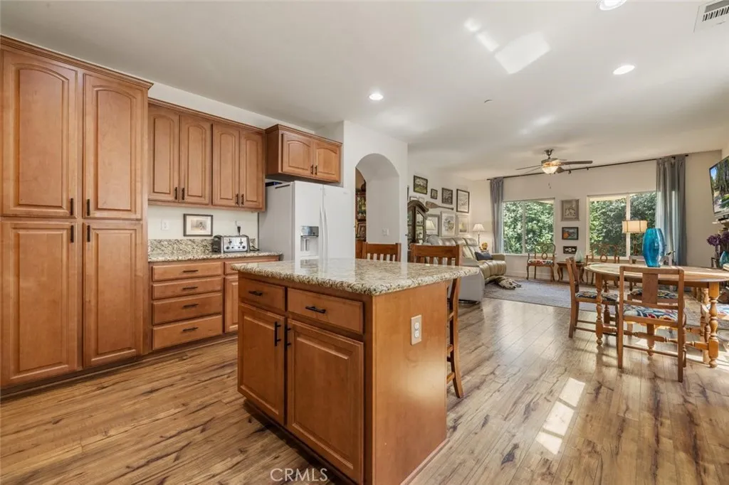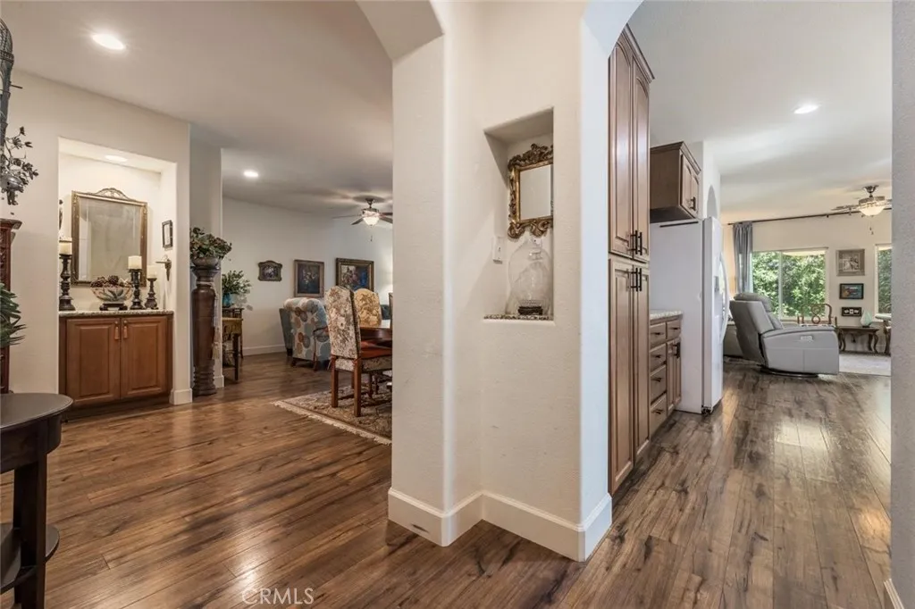 This stunning corner-lot home is tucked into a quiet Oakdale neighborhood just minutes from schools, parks, & shopping. Offering 2,182 SF of thoughtfully designed living space, the layout feels both comfortable and inviting. Inside, find a formal living room w/adjoining dining area, a cozy family room complete with a gas fireplace, and a spacious chef's kitchen ready for your culinary creations. The west wing is dedicated to a guest powder room & the primary retreat, featuring a generous walk-in closet and an ensuite bath with dual sinks, a shower, and a spacious soaking tub - perfect for those long days. The east wing, features three additional bedrooms, a full bath with dual sinks and are conveniently located near the laundry room, creating privacy & balance throughout the home. Every detail was carefully considered at construction with an extended 24' deep garage complete w/sink, additional insulation in the attic ensuring energy efficiency, taller baseboards throughout, French doors leading to a covered patio, w/2 ceiling fans & built-in sink - ideal for outdoor gatherings. Practical features include a French drain & concrete walkways around the backyard, and a pre-planned outlet at the front for a future fountain. This home blends thoughtful upgrades with timeless comfort.