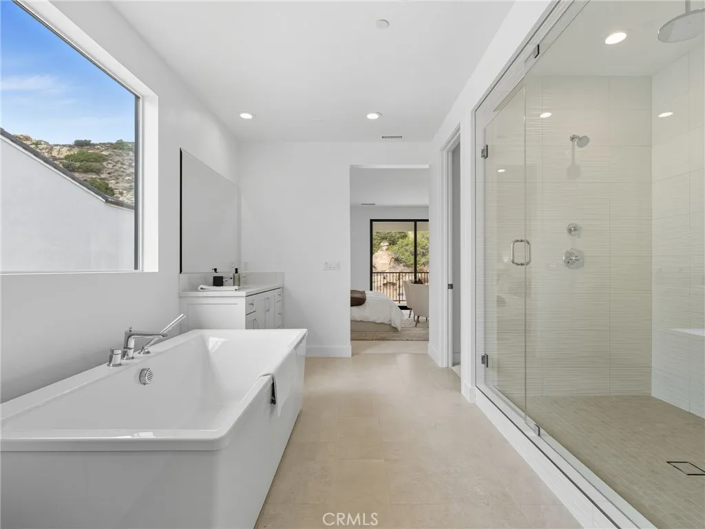 Brand new construction by Toll Brothers-Hidden Oaks, an exclusive community of only 33 luxury estate-sized homes on expansive, equestrian home sites in an established Chatsworth, CA location, surrounded by nature, mountains and boulders, yet so close to everything you love about the city. This Sunstone floor plan is MOVE-IN READY NOW with over $390,000 in designer upgrades, including shower tiling, flooring, cabinet hardware and more! A welcoming covered entry opens onto a soaring two-story foyer with modern glass stair railings, a stunning two-story great room with 78 linear fireplace and 20 x 8 multi-slide stacking door and expansive glass windows atop, allowing maximum visibility of the unique boulder mountain backdrop at the end of the nearly 80 deep expansive rear yard with 12 wide side yards. Upgraded Alabaster White Craftsman cabinets throughout the home. The expertly designed kitchen features a large center island with waterfall edge and breakfast bar, 2 side-by-side 30 WOLF induction ranges with a wide 60 hood, SubZero refrigerator, plenty of quartz counter space and walk-in pantry at the end of a versatile large flex room. The 12 x 8 multi-slide stacking door at the kitchen offers desirable access to the luxurious outdoor living space, where you can look out to an over 22,000 sf home site with approx. 12,250sf net pad. A first-floor bedroom with a private bath and walk-in closet is adjacent to a large flex room/office space. The primary bedroom suite includes a covered deck to enjoy starry nights, expansive walk-in closet and lush primary bath. Secondary bedrooms,