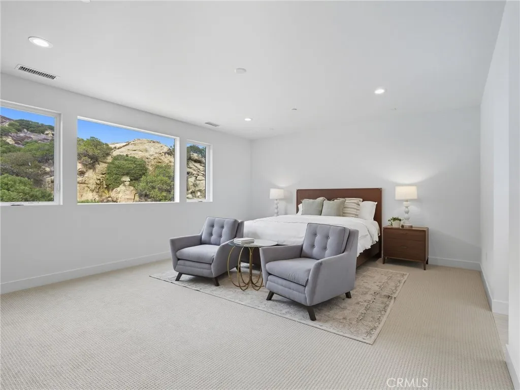 Brand new construction by Toll Brothers- Hidden Oaks, an exclusive community of only 33 luxury estate-sized new homes on expansive, equestrian home sites in an established Chatsworth, CA location, surrounded by nature, mountains and boulders. This Zircon floor plan is MOVE-IN READY NOW with over $305,000 in upgrades, including hardwood floors, white flat panel cabinets and hardware, shower tiling & more! Zircon is the largest floor plan at Hidden Oaks and the epitome of luxury with an inviting covered entry that flows into an elegant two-story foyer presenting a dramatic side staircase with modern glass railings allowing unobstructed views of the two-story dining area filled with an abundance of natural light coming from the 12 x 8 multi-slide stacking door with expansive glass windows atop looking out to the entertainers yard and dramatic natural boulders beyond. The impressive great room features a 78 linear fireplace. The expertly designed kitchen with a large center island with a waterfall edge, breakfast bar, 2 side-by-side 30 Wolf induction ranges with a wide 60 hood, SubZero refrigerator, plenty of quartz counter space and walk-in pantry. The additional 12x8 door at the kitchen offers desirable access to the luxurious outdoor living space looking out to almost a 22,000 gross sq ft homesite, with over 12,000sf of net pad. The primary bedroom suite features TWO walk-in closets and a spa-like upgraded primary bath with dual vanities, large soaking tub, deluxe glass-enclosed shower, and a private water closet. Secondary bedrooms, with full private en-suite baths, are adj