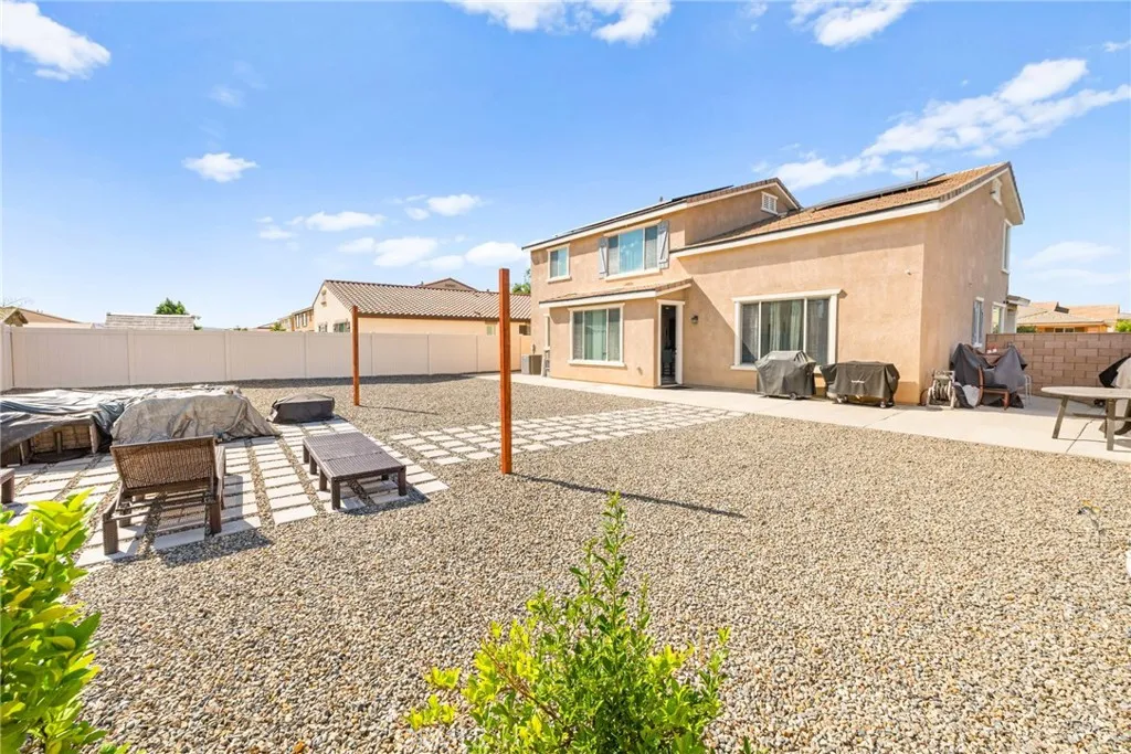 This is your chance to own a spacious home in the desirable Avelina community! Featuring 2,688 sq ft of living space on a 7,405 sq ft lot, this 4 bedroom, 2.5 bathroom, 2-car garage home offers comfort, convenience, and room to grow. Step inside and youll immediately notice how well this home has been maintained, with a layout that feels both welcoming and functional. The formal den at the front can easily be transformed into a 5th bedroom, while the open living and dining areas flow seamlessly into the kitchen. The kitchen is a highlight, featuring a large island thats perfect for gatherings, meal prep, or entertaining. A generous loft upstairs provides flexible space for a game room, office, or second living area. The laundry room is conveniently located downstairs. The owners suite is a private retreat, complete with a full bathroom and ample closet space. Secondary bedrooms are well-sized, making this home ideal for family living or hosting guests. Step outside to a private backyard with drought-tolerant landscaping and a patioperfect for low-maintenance outdoor enjoyment. The community offers resort-style amenities including a pool, spa, playground, barbecue areas, picnic spaces, and biking trailsall designed for fun and relaxation. This home also comes with a leased solar system, helping you save on energy costs year-round. Location couldnt be betterjust 1 mile away from schools, coffee shops, grocery stores, restaurants, and hospitals, with easy freeway access. Dont miss the opportunity to call this home yours!