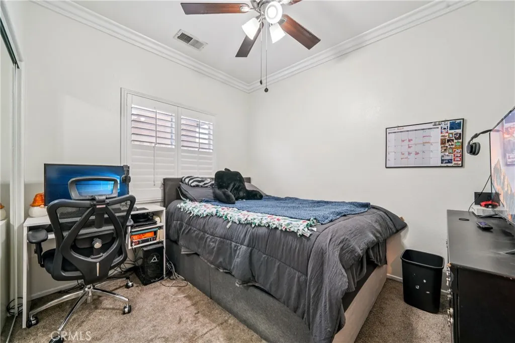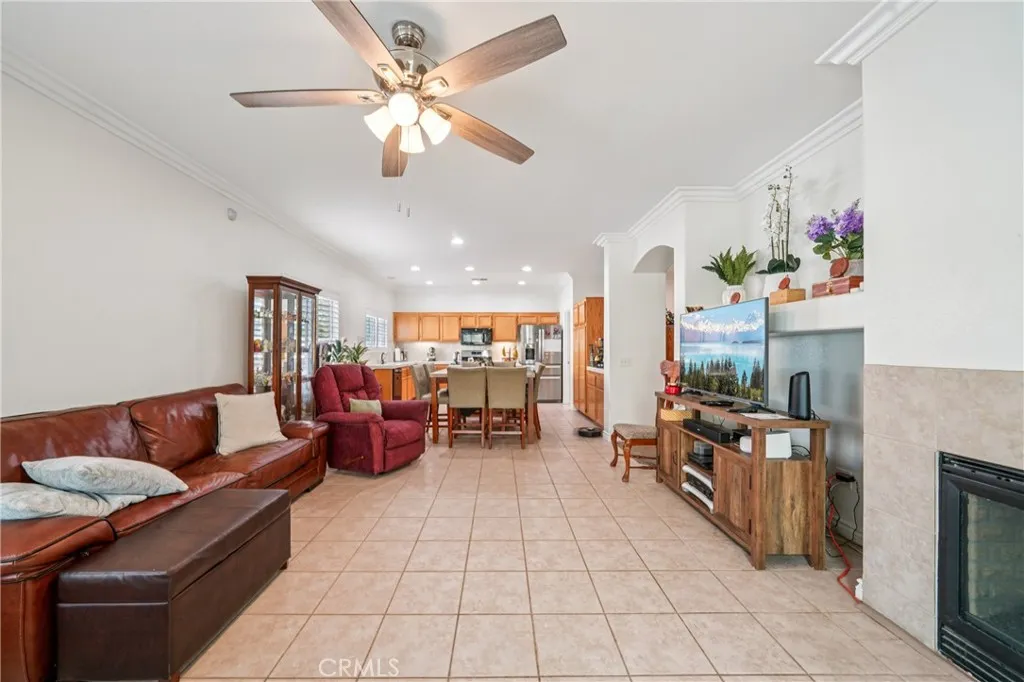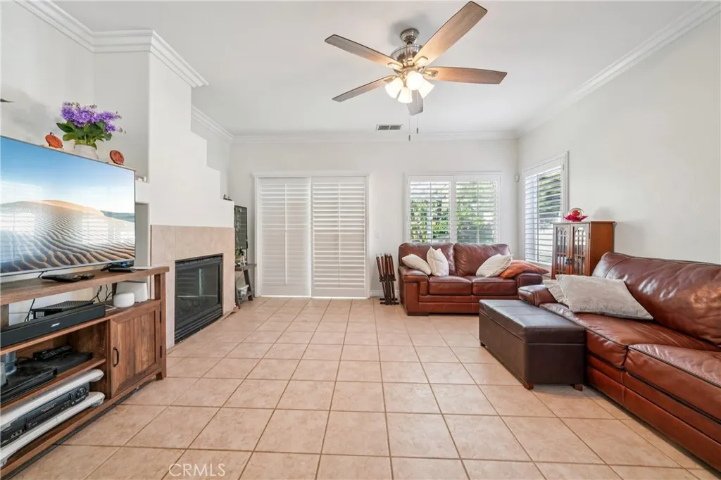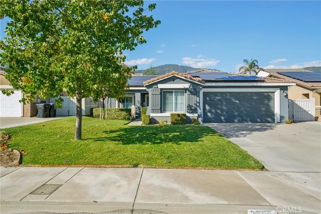 Fantastic Verdemont Heights Single Story Home! Available for the first time in 21 years, this great home is nestled at the foot of the majestic San Bernardino Mountains in one of San Bernadino's best kept secrets, Verdemont Heights. At the moment, this is the only single story available in the area! Built in 2004, w/ NO HOA, this is the home you've been looking for! Upon arrival, you'll appreciate the freshly painted exterior that was just finished in 2022, lush front yard w/ grass and an extra large driveway. After entering, there is a spacious formal living area that divides the bedrooms and dining/kitchen area. The entire interior was just repainted in January of this year and beautiful crown molding was also added throughout. The kitchen opens up nicely to the dining and second living area. The island kitchen offers tile counters, undermount lights and tons of storage. The living area off the kitchen boasts a gas fireplace, wood shutters, plenty of room and direct access to the backyard. The secondary bedrooms are spacious, both have ceiling fans and the tall ceilings throughout really open up the space. Both the hallway bath and the primary bath were updated in 2021. The primary suite has direct access to a private bath. The primary bath has a beautifully tiled walk in shower and dual sinks. The backyard features a nice covered patio, and a hillside that can be terraced or enjoyed as is. The garage offers an additional area that can be utilized as a shop, hobby area, man cave or additional storage. There is also plumbing in the floor if you would like to convert the ga