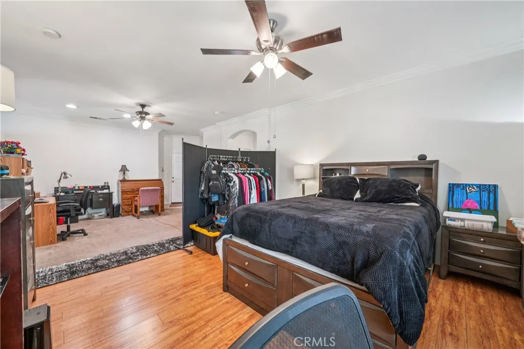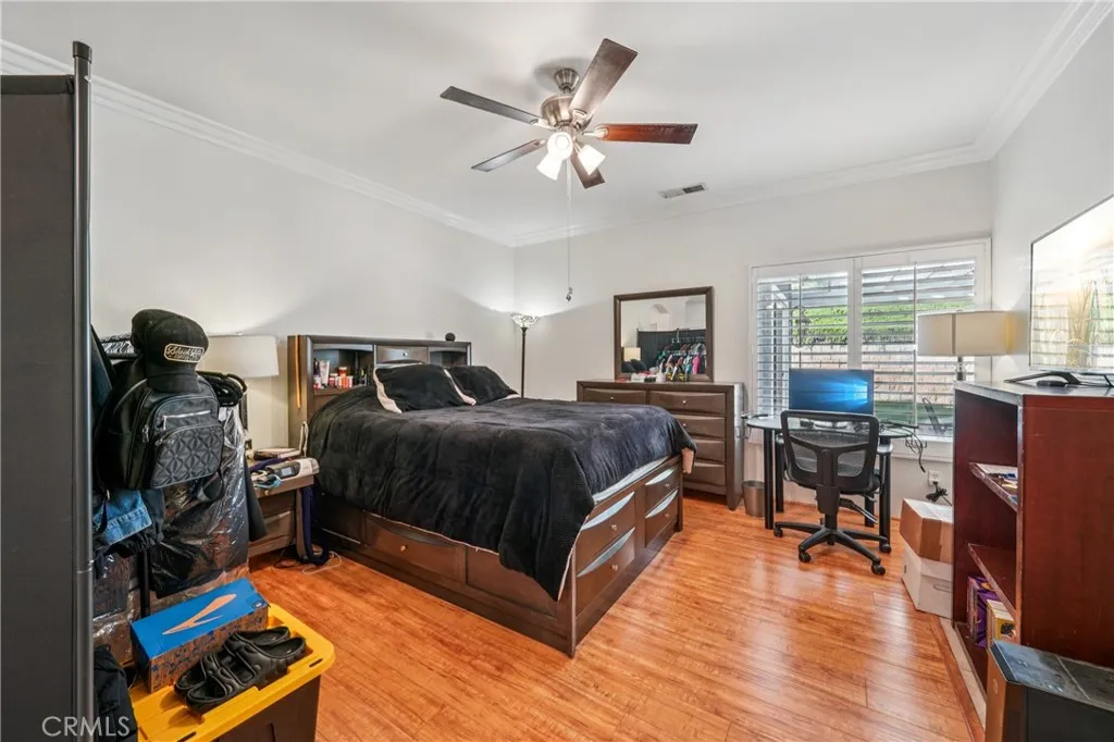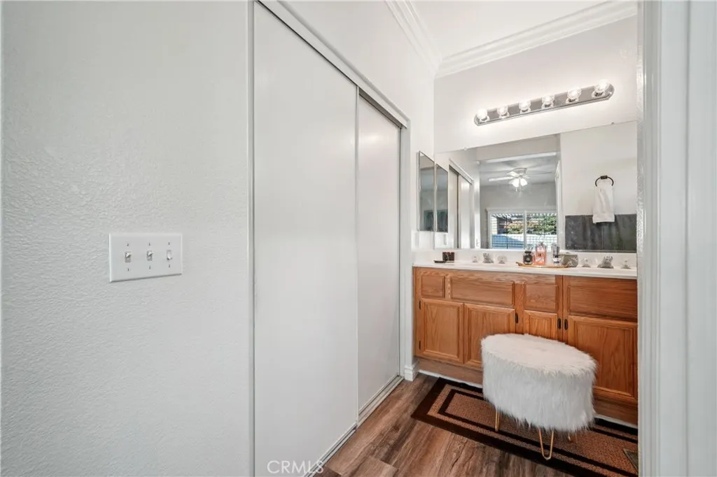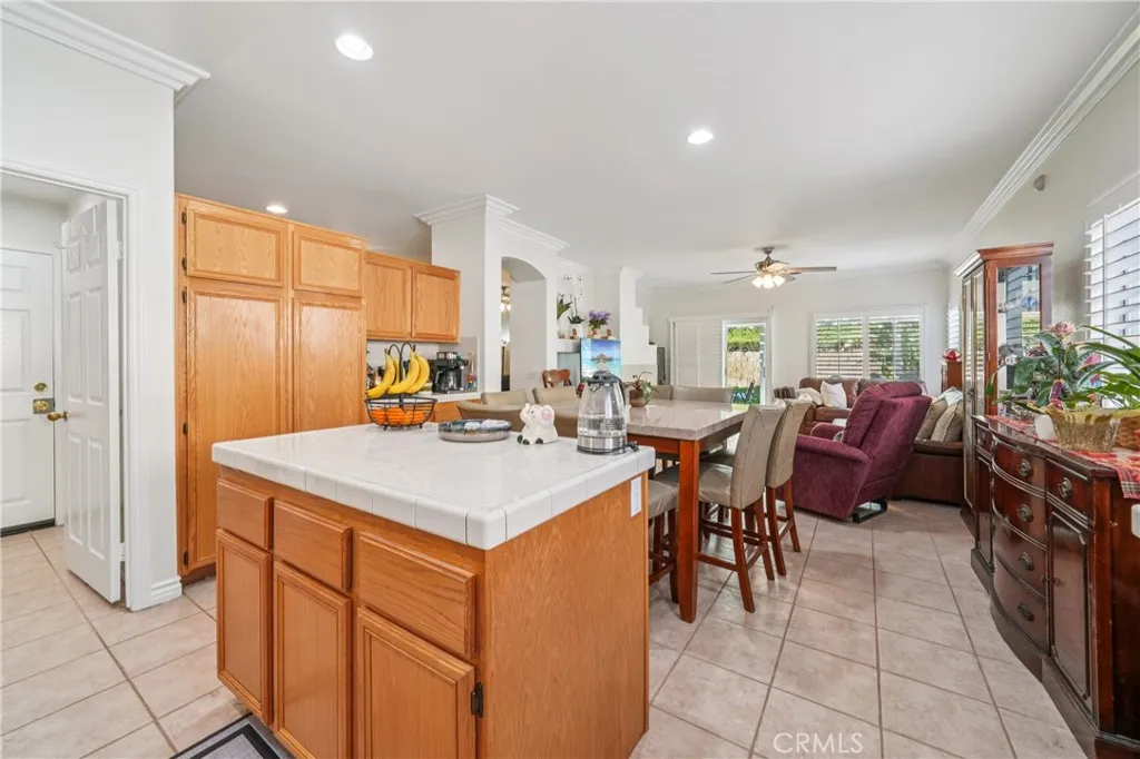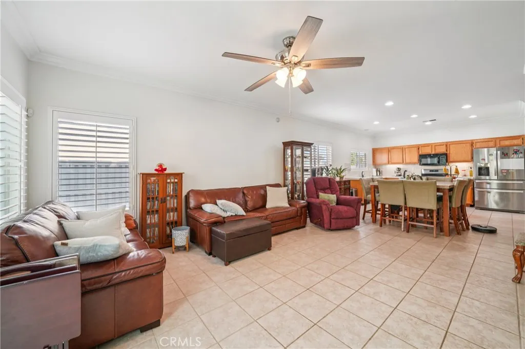 Fantastic Verdemont Heights Single Story Home! Available for the first time in 21 years, this great home is nestled at the foot of the majestic San Bernardino Mountains in one of San Bernadino's best kept secrets, Verdemont Heights. At the moment, this is the only single story available in the area! Built in 2004, w/ NO HOA, this is the home you've been looking for! Upon arrival, you'll appreciate the freshly painted exterior that was just finished in 2022, lush front yard w/ grass and an extra large driveway. After entering, there is a spacious formal living area that divides the bedrooms and dining/kitchen area. The entire interior was just repainted in January of this year and beautiful crown molding was also added throughout. The kitchen opens up nicely to the dining and second living area. The island kitchen offers tile counters, undermount lights and tons of storage. The living area off the kitchen boasts a gas fireplace, wood shutters, plenty of room and direct access to the backyard. The secondary bedrooms are spacious, both have ceiling fans and the tall ceilings throughout really open up the space. Both the hallway bath and the primary bath were updated in 2021. The primary suite has direct access to a private bath. The primary bath has a beautifully tiled walk in shower and dual sinks. The backyard features a nice covered patio, and a hillside that can be terraced or enjoyed as is. The garage offers an additional area that can be utilized as a shop, hobby area, man cave or additional storage. There is also plumbing in the floor if you would like to convert the ga