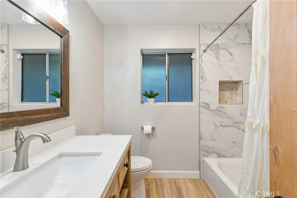 Picture yourself waking up to breathtaking mountain views every morning, with the warmth of a characterful wood burning stove inviting you to cozy up on chilly nights with a cup of cocoa or glass of wine. This stunning retreat in Running Springs is the perfect escape from the hustle and bustle of city life, yet just 1 hour and 30 minutes from LA and a short drive to Snow Valley for endless winter adventures. Step inside to discover a beautifully renovated interior, where modern amenities blend seamlessly with natural charm. You'll love the stunning Quartz countertops and custom cabinetry in the kitchen, while a newer roof and HVAC system ensure peace of mind and comfort all year round (AC at this price point is pretty rare!). Large, dual-pane windows frame the majestic views, flooding the home with natural light and making the most of the mountainous surroundings. Why come all this way to the mountains and not find a home with a view from which you can watch the sun rise and set each and every day? The current owners do exactly that! With an attached 2-car garage, new concrete driveway, and beautiful wooden steps, this home is perfectly poised for you to make it your own. And with a price tag of $475,000, it's an unbeatable opportunity to own a piece of mountain paradise. Come home to serenity, adventure, and the beauty of nature get in touch for a showing and make this fully remodeled and gorgeously modern home your own!