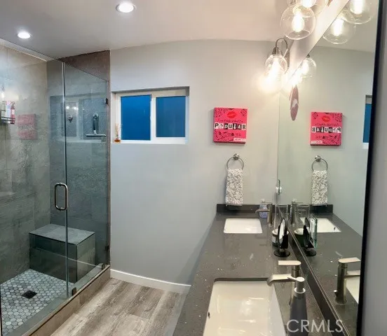 Incredible El Segundo Eastside home on an ample-sized lot in an excellent location, fully remodeled and featuring 3,404 square feet of living space across two levels. This energy-efficient home includes paid-off solar panels and dual AC/heating heat pumps. The upper level offers four bedrooms, two full bathrooms, a spacious kitchen with included appliances, a separate living room, and dining room. The lower level includes three additional bedrooms, two full bathrooms, a family room, and a large entertainment area with a fireplace. The expansive primary suite boasts a walk-in shower, walk-in closet, fireplace, and private access to the lush backyard, which is surrounded by greenery and fruit trees. Additional highlights include a 2-car garage with direct street access and convenient proximity to nearby freeways.