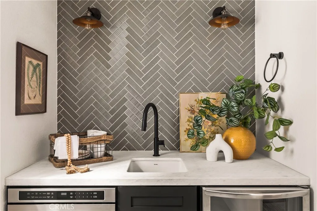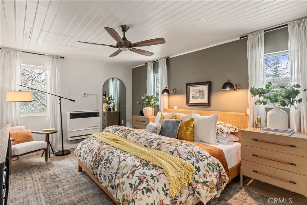 Escape to this impeccably remodeled and peaceful Rimforest retreat that's nestled just a few short minutes from Lake Arrowhead and away from the hustle and bustle of every day life! Backing directly to National Forest land, the privacy and access to nature that is offered by this property is extremely rare in Rimforest. Combining the perfect blend of rustic charm and modern comforts, this inviting cabin features an expansive multi-level floorplan that is perfectly designed to accommodate owner occupancy, short term rentals, or a second home getaway! Redesigned and expertly curated by Havend Home Foundry, this cabin offers a new gorgeous galley kitchen with stunning limestone countertops and custom backsplash, an oversize fireclay farmhouse sink, open shelving, black shaker cabinets with vintage-inspired antique brass hardware, stainless steel appliances (fridge included!) and cozy built-in banquette seating at the eat-in kitchen! All new shaker style doors throughout, medium tone flooring, custom interior and exterior paint, a diligently curated lighting plan that truly allows for a variety of entertaining or relaxing spaces throughout, three brand new bathrooms with natural stone countertops, timeless white subway tile, and a luxurious soaking tub at the lower level primary suite. If having a self-contained unit is something you're looking for, then you'll appreciate the dual primary suites this cabin offers, with the downstairs suite having its own separate entrance, designated driveway, sitting area, and kitchenette. Every single detail was taken into consideration in th