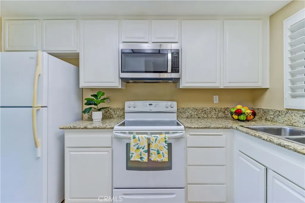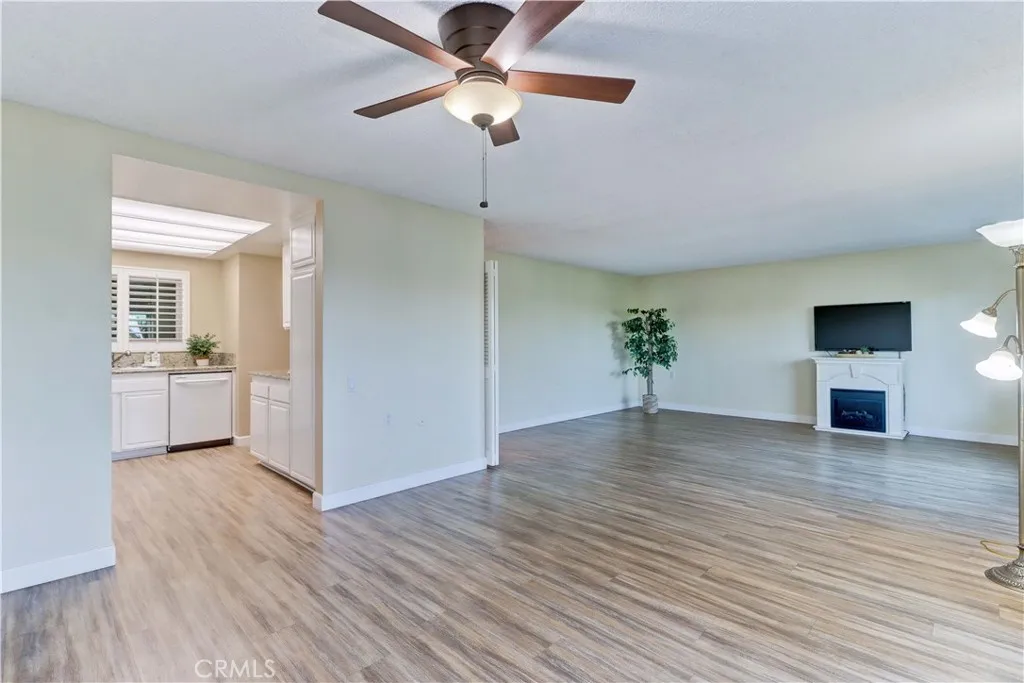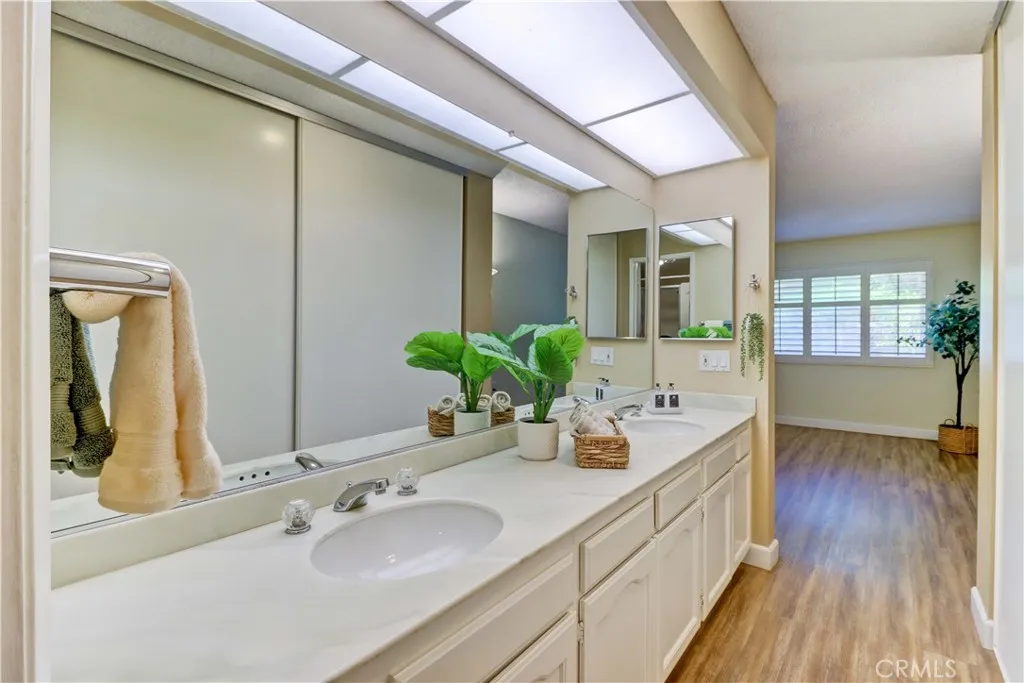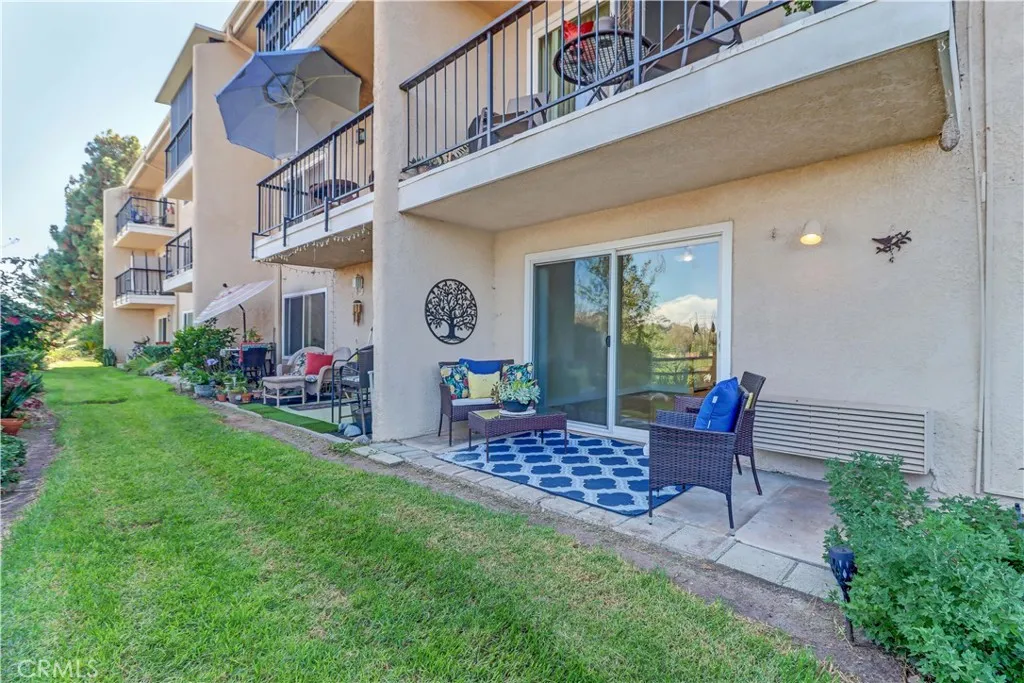 Wonderful location + view! 2BD/2BA first floor, east facing "Sierra" condo - enjoy the sunrise and mountain views from this elevated blufftop location. Great location between Clubhouses 5 and 6 - enjoy pools, small gym, game rooms, billiards and the many social activities that happen at Clubhouse 5. Walk right in and notice the vinyl plank floors and upgraded baseboards throughout leading to the spacious living/dining area with a vintage wet bar and great view. Dual pane windows/sliders (most with plantation shutters) frame the beautiful outlook and smooth ceilings give a modern feel. Kitchen features granite counters, stainless sink and microwave. Bedrooms are on the west facing side to receive the afternoon sun with good sized closets. Guest bathroom houses tub/shower combo and Corian-topped vanity while the primary bath boasts long, matching dual sink vanity area and walk-in shower behind the privacy door. Close to community laundry area and carport. Clubhouse 5 features a lap swimming pool with a gorgeous view and aquatic classes, hot pool, small drop-in fitness center, fitness studio and game room. Events are held at the large main lounge with stage and dance floor. Clubhouse 6 has a smaller pool open during the summertime and hosts many private parties and groups. Laguna Woods Village residents enjoy a 27-hole championship golf course, a 9-hole executive par 3 course, pickleball and tennis courts, lawn bowling, gyms, clubhouses, swimming pools, horse stables, gardening centers, artist studios, computer workrooms and classes + over 200 clubs and organizations.