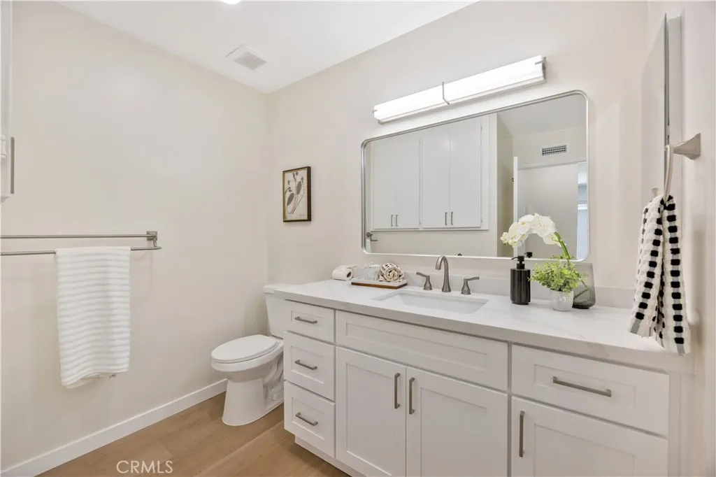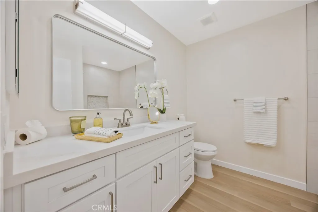 Fully Remodeled Condo in the Heart of Orange! Welcome to this beautifully updated 2-bedroom, 2-bath upstairs unit offering modern comfort and convenience. Step inside to find fresh paint, new LVP flooring, recessed lighting and dual-paned windows throughout. The stunning kitchen features brand-new cabinets, quartz countertops and stainless steel appliances, perfect for the home chef. Both bathrooms have been completely remodeled with porcelain tile, new vanities topped with quartz, updated fixtures and modern finishes. The spacious primary suite includes a walk-in closet, remodeled en-suite bathroom with a walk-in shower, updated vanity, and a linen cabinet for extra storage. Both bedrooms are equipped with ceiling fans and the home now boasts the convenience of inside laundry! Enjoy the benefits of a one-car garage and community pool. Plus a prime location just minutes from freeways, shopping, dining and entertainment - and a short drive to Chapman University, the Orange Plaza, Honda Center, Angel Stadium and Disneyland! Zoned for highly rated schools including Villa Park High School, Cerro Villa Middle School and Fletcher Elementary - dual immersion Mandarin program. Dont miss your chance to own this move-in-ready gem. Schedule your showing today!