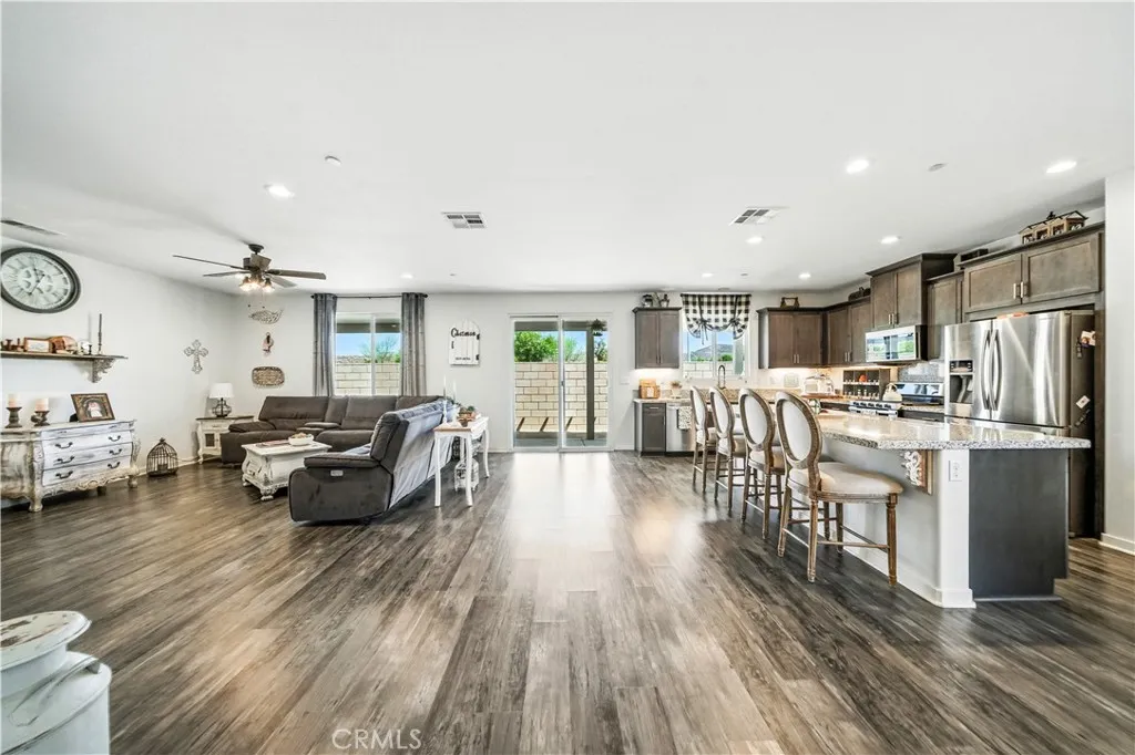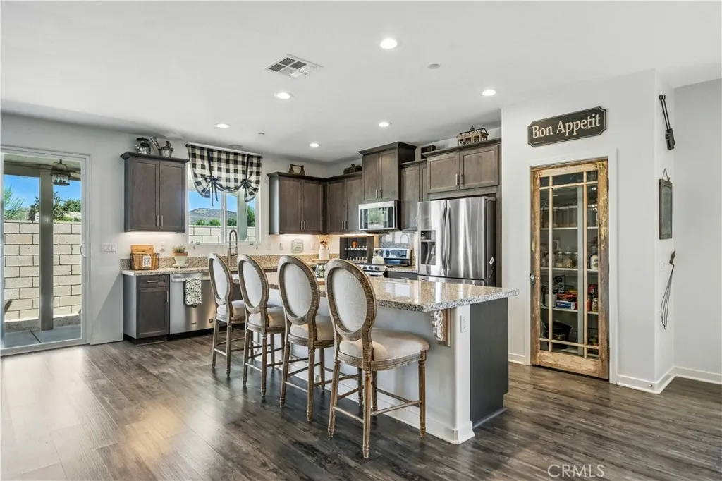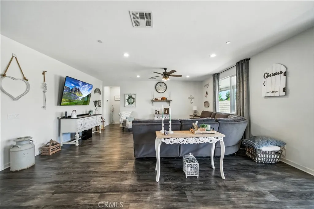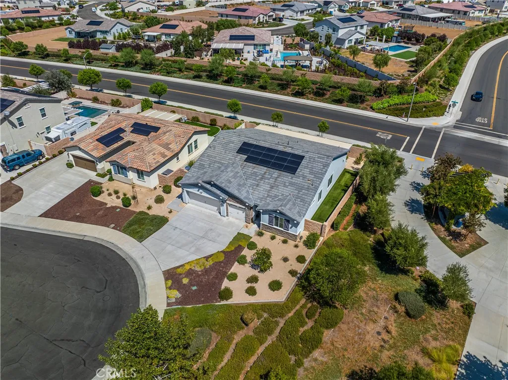 Welcome to 31180 Petal Circle, a beautifully upgraded 3-bedroom, 2.5-bathroom home with 2,293 sq. ft. of living space, situated on a spacious 7,405 sq. ft. lot. Built in 2019 by Beazer Homes, this property shows like a model and includes PAID OFF SOLAR. The home features a fully landscaped backyard with a covered patio and ceiling fans, perfect for outdoor entertaining. Additional upgrades include luxury vinyl plank flooring throughout, an epoxy garage floor, ceiling fans in every bedroom and the living room, upgraded light fixtures, new faucets and mirrors, and a barn door leading to the primary bath. Decorative wainscoting in the front hallway and office add a custom touch. The kitchen is enhanced with a new faucet, while a security screen door and backyard sheds provide extra functionality. This turn-key property blends modern style, comfort, and energy efficiency in a prime Winchester location.