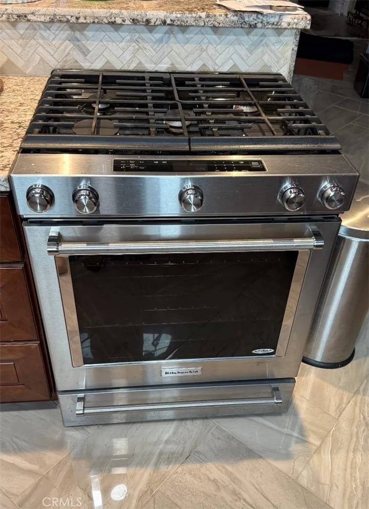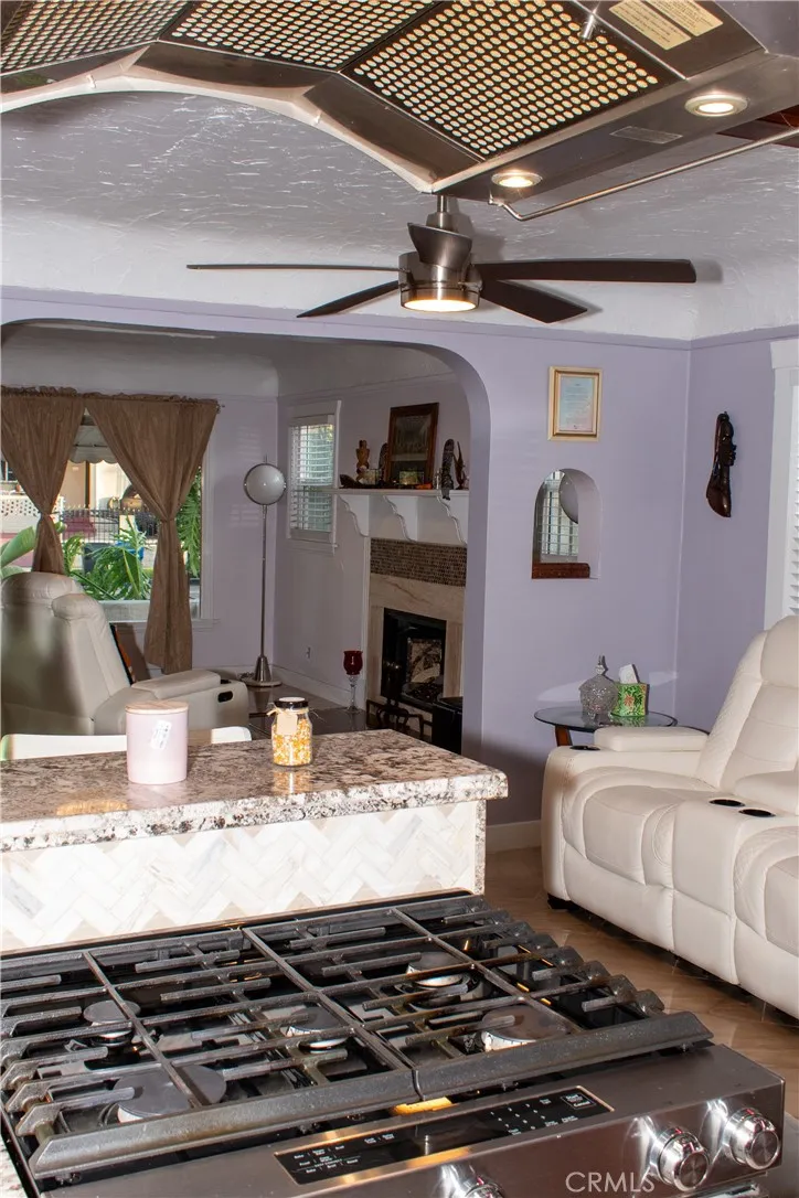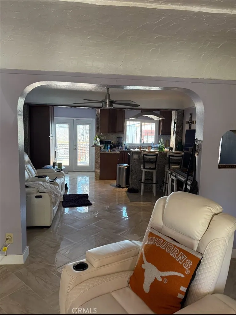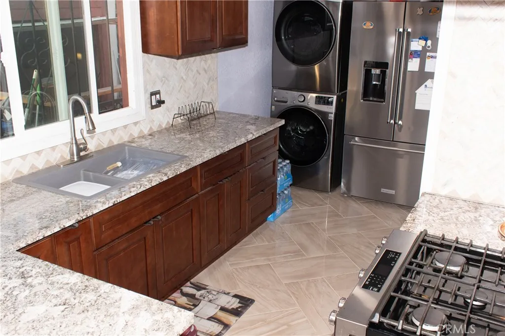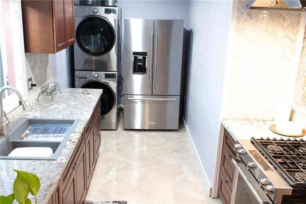 PRICE REDUCTION!! This charming Spanish-style home features a remodeled 2-bedroom, 1-bathroom. Standalone garage possibly suitable for an ADU! Cozy living room that includes a fireplace and a large, picturesque window to enjoy the view of the beautifully landscaped low-maintenance front yard with lush trees. The upgraded bathroom offers a spacious shower, safety bars, and a 36-inch entry door for handicapped accessibility. The kitchen is equipped with granite countertops, a graphite stone sink, and stainless-steel appliances, including a newer stove/oven, LG refrigerator, and stackable washer/dryer combo and are all included in the purchase price. Upgraded remote controlled ceiling fans throughout, updated plumbing, iron security gates, a tankless electric water heater, features new 3-inch blinds for window coverings and newer cabinetry throughout, adding to its modern charm. and. It also has stunning marble-tiled floors and French doors that lead out to a raised deck patio ideal for entertaining, complete with a propane BBQ/Grilling station with island. The backyard offers an open canvas, including a finished garage with shelving, allowing you to design and style the space to your liking... The home is located in a warm, family-friendly neighborhood, close to schools, making it ideal for a variety of lifestyles. With everything move-in ready, this property is a must-see for anyone serious about home-ownershipdont miss the chance to make it your own!