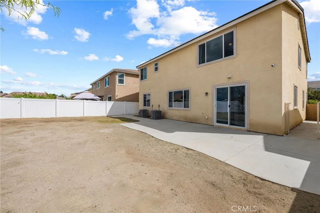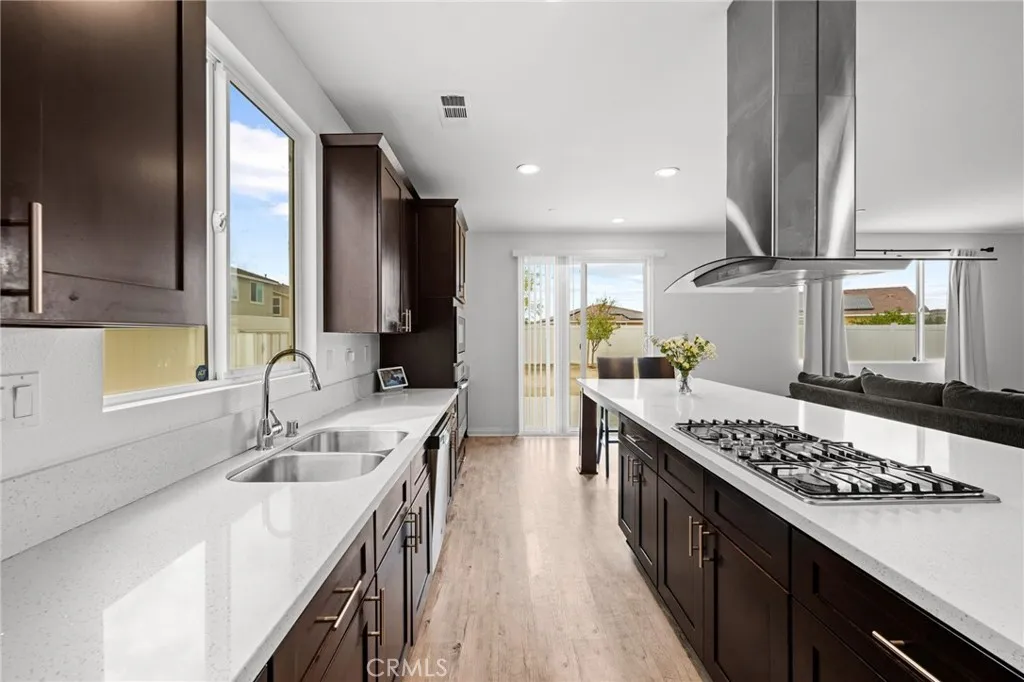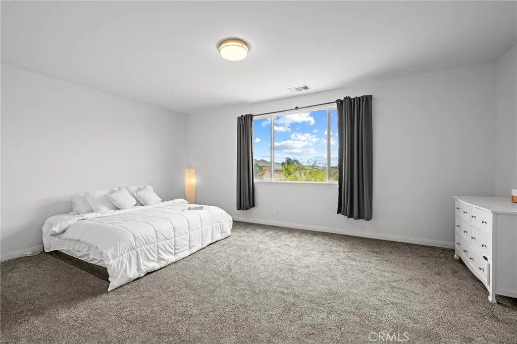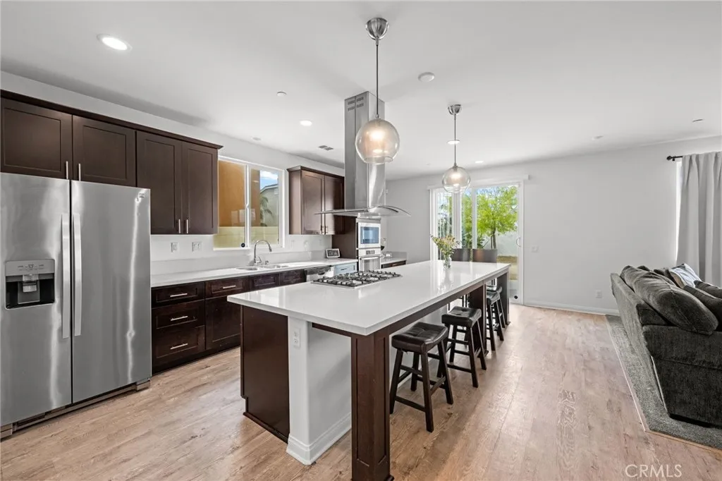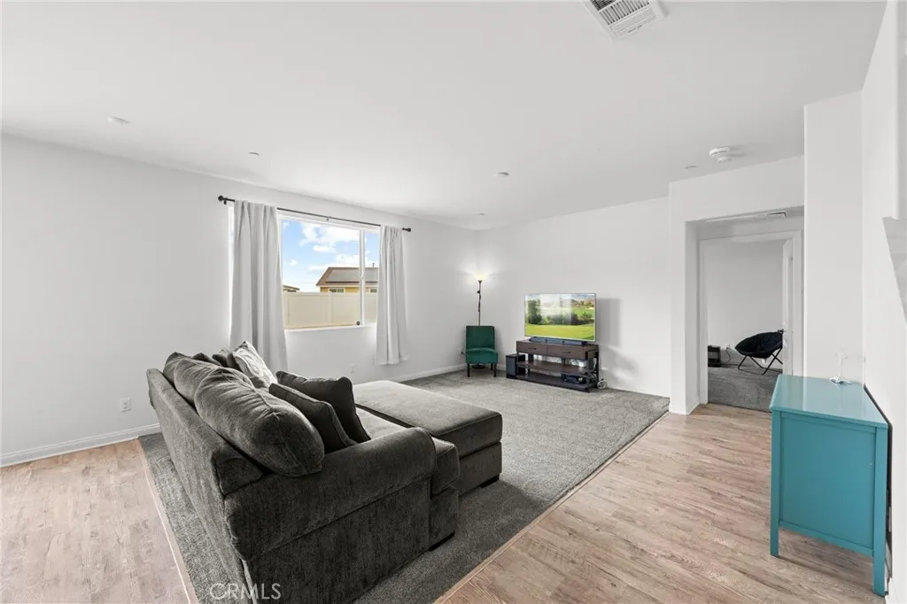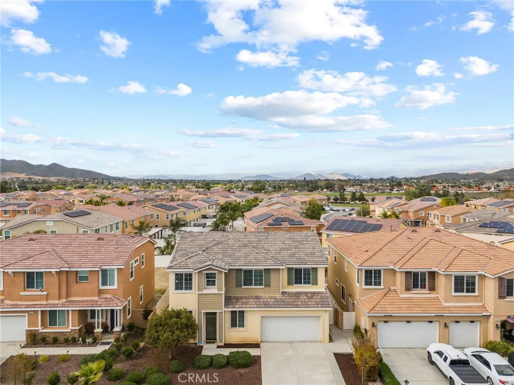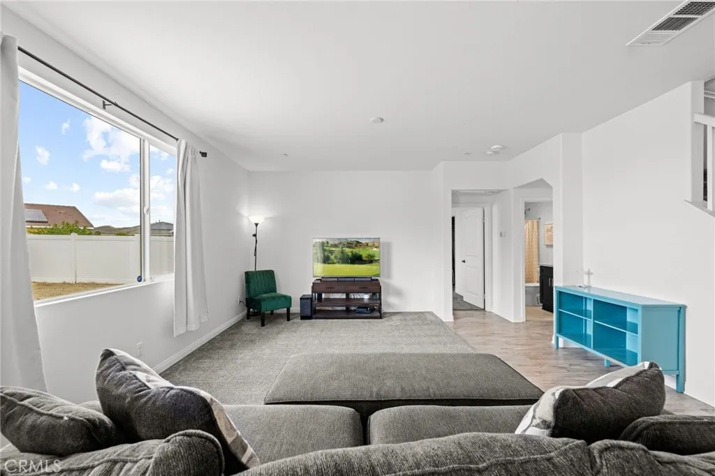 Welcome to 26382 Bramble Wood Cir, a stunning 5-bedroom, 3-bathroom residence located in Menifees highly sought-after Pacific Mayfield Community. Built in 2018, this expansive 3,021 sq ft home blends modern design with everyday comfort. The open floor plan connects spacious living and dining areas to a large family room and a chefs kitchen featuring an oversized island that seats 8, stainless steel appliances, quartz countertops, a walk-in pantry, and a convenient butlers pantry that connects to the dining roomperfect for entertaining. Downstairs includes a full bedroom and bathroom ideal for guests or multi-generational living, while upstairs offers a versatile loft space and a luxurious primary suite with two walk-in closets, dual sinks, quartz countertops, a soaking tub, and a separate shower. Three additional bedrooms share a beautifully finished bathroom with dual sinks and quartz counters. Additional upgrades include a QuietCool whole-house fan system, ADT security system, a 2-car garage, and a private backyard with durable vinyl fencing. Situated on a 5,663 sq ft lot, this home offers space, style, and a prime location near schools, parks, shopping, and dining. Dont miss your chance to own this move-in ready home that perfectly balances luxury, comfort, and convenienceschedule your private showing today!