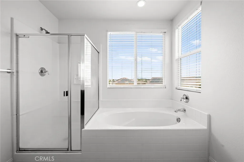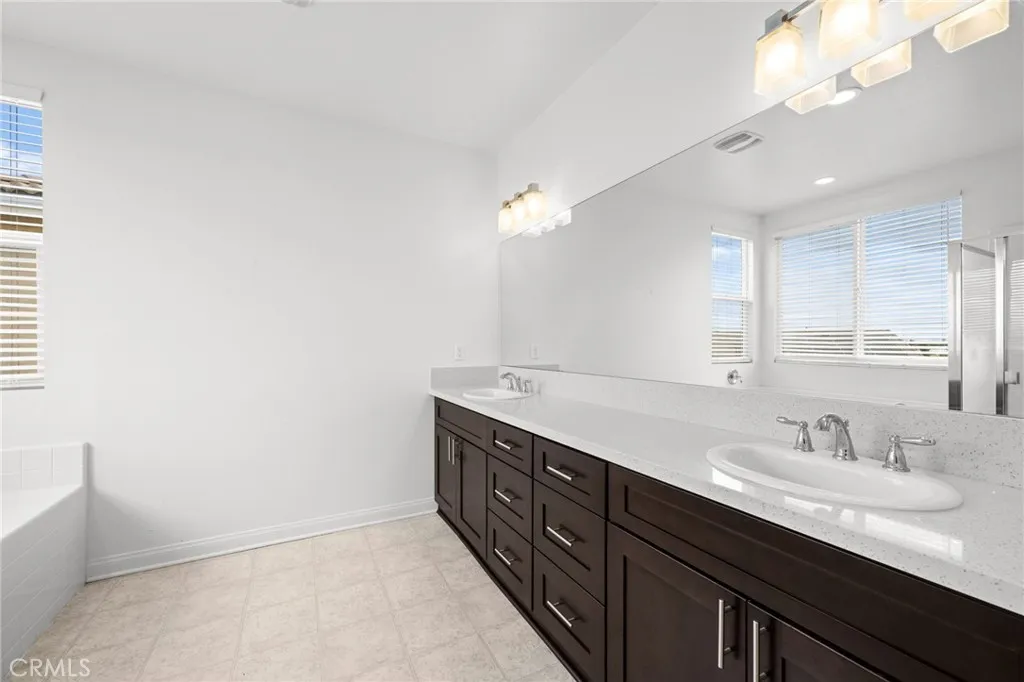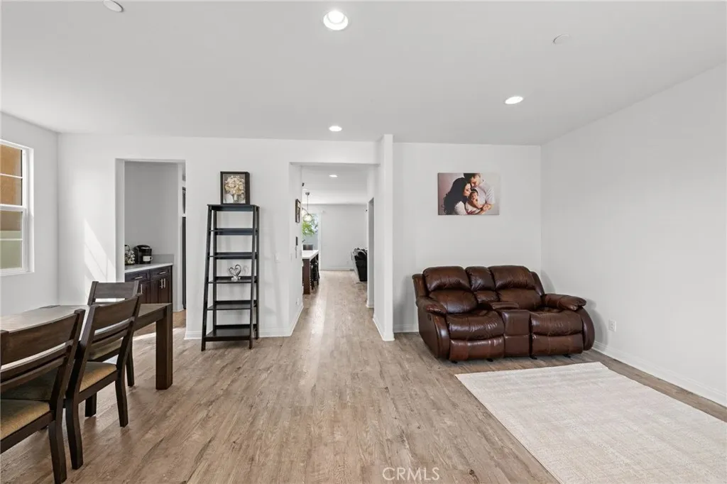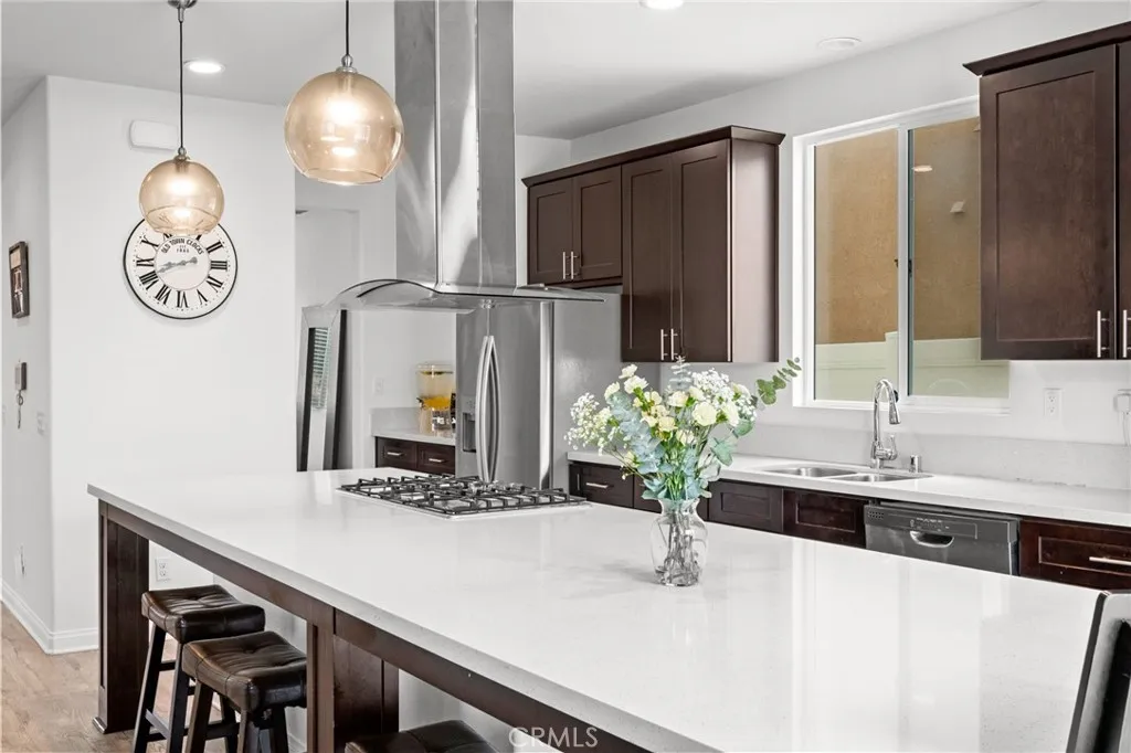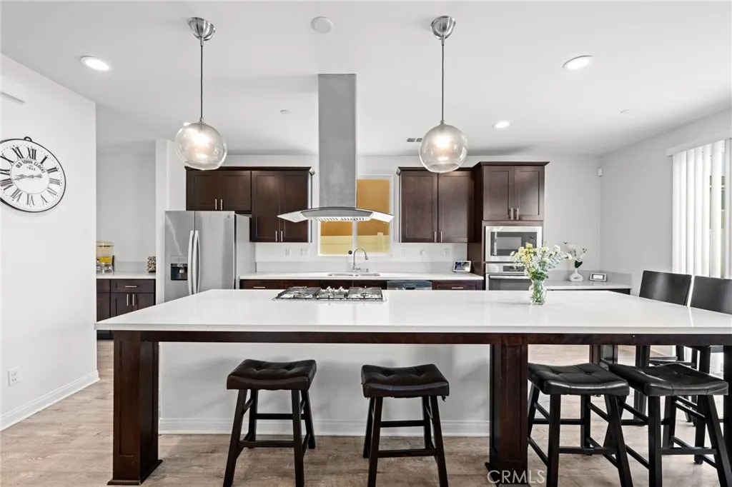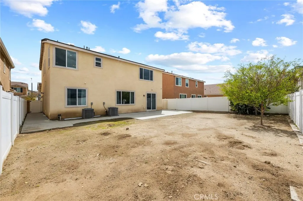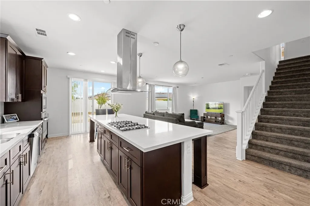 Welcome to 26382 Bramble Wood Cir, a stunning 5-bedroom, 3-bathroom residence located in Menifees highly sought-after Pacific Mayfield Community. Built in 2018, this expansive 3,021 sq ft home blends modern design with everyday comfort. The open floor plan connects spacious living and dining areas to a large family room and a chefs kitchen featuring an oversized island that seats 8, stainless steel appliances, quartz countertops, a walk-in pantry, and a convenient butlers pantry that connects to the dining roomperfect for entertaining. Downstairs includes a full bedroom and bathroom ideal for guests or multi-generational living, while upstairs offers a versatile loft space and a luxurious primary suite with two walk-in closets, dual sinks, quartz countertops, a soaking tub, and a separate shower. Three additional bedrooms share a beautifully finished bathroom with dual sinks and quartz counters. Additional upgrades include a QuietCool whole-house fan system, ADT security system, a 2-car garage, and a private backyard with durable vinyl fencing. Situated on a 5,663 sq ft lot, this home offers space, style, and a prime location near schools, parks, shopping, and dining. Dont miss your chance to own this move-in ready home that perfectly balances luxury, comfort, and convenienceschedule your private showing today!